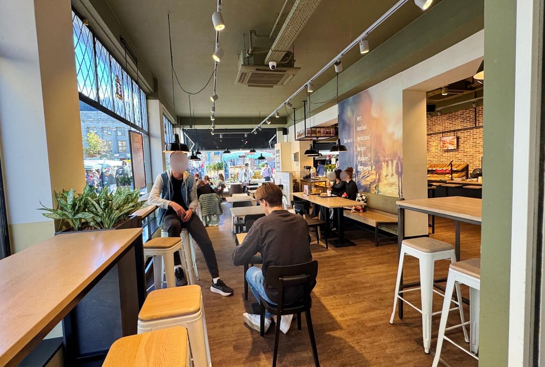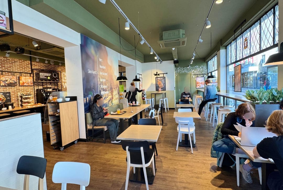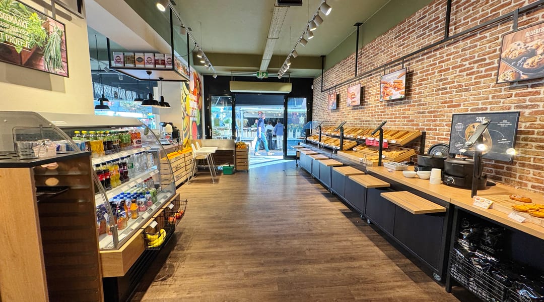 Gelegen op een drukke hoek met het Akerkhof en Stoeldraaierstraat aan het begin van de Vismarkt. Tegenover de winkelruimte bevindt zich Albert Heijn Korenbeurs en in de nabije omgeving bevinden zich o.a. NZA New Zealand Auckland, Claudia Strater, Sissy-Boy, Junior Shop, Summum, Derksen & Derksen. Het betreft de huidige vestiging van BackWerk.