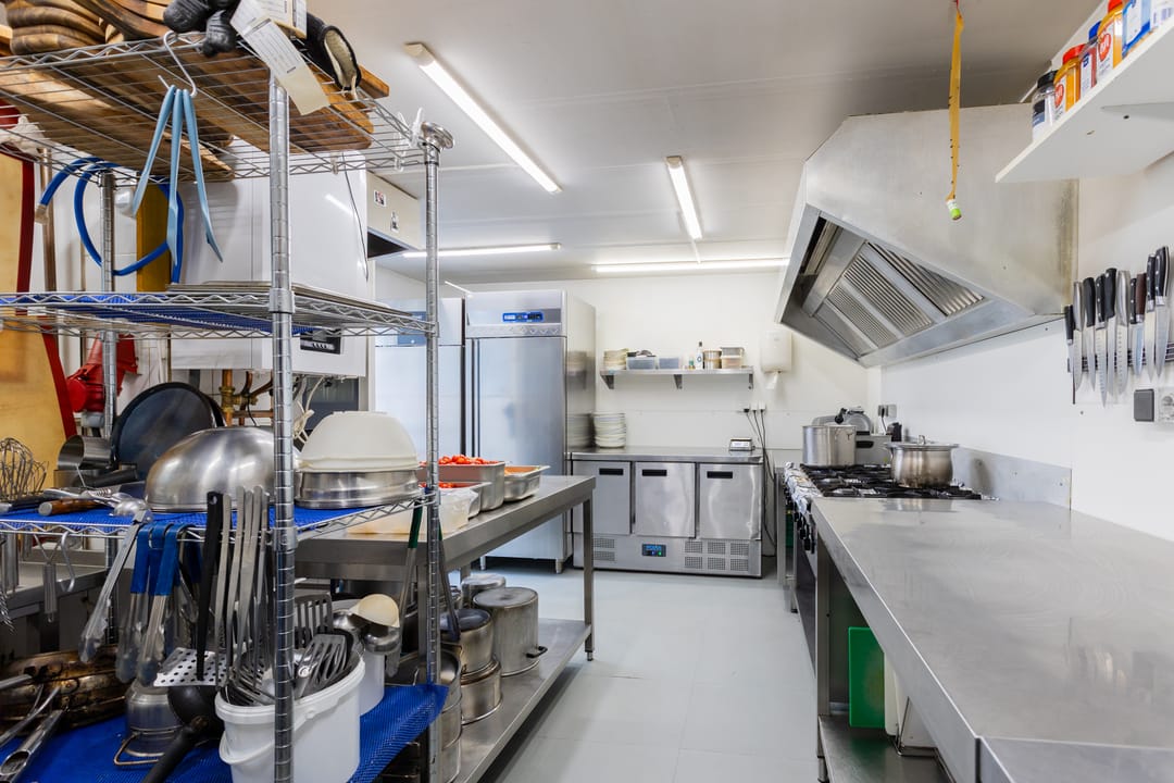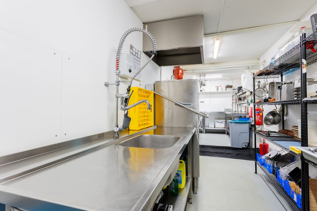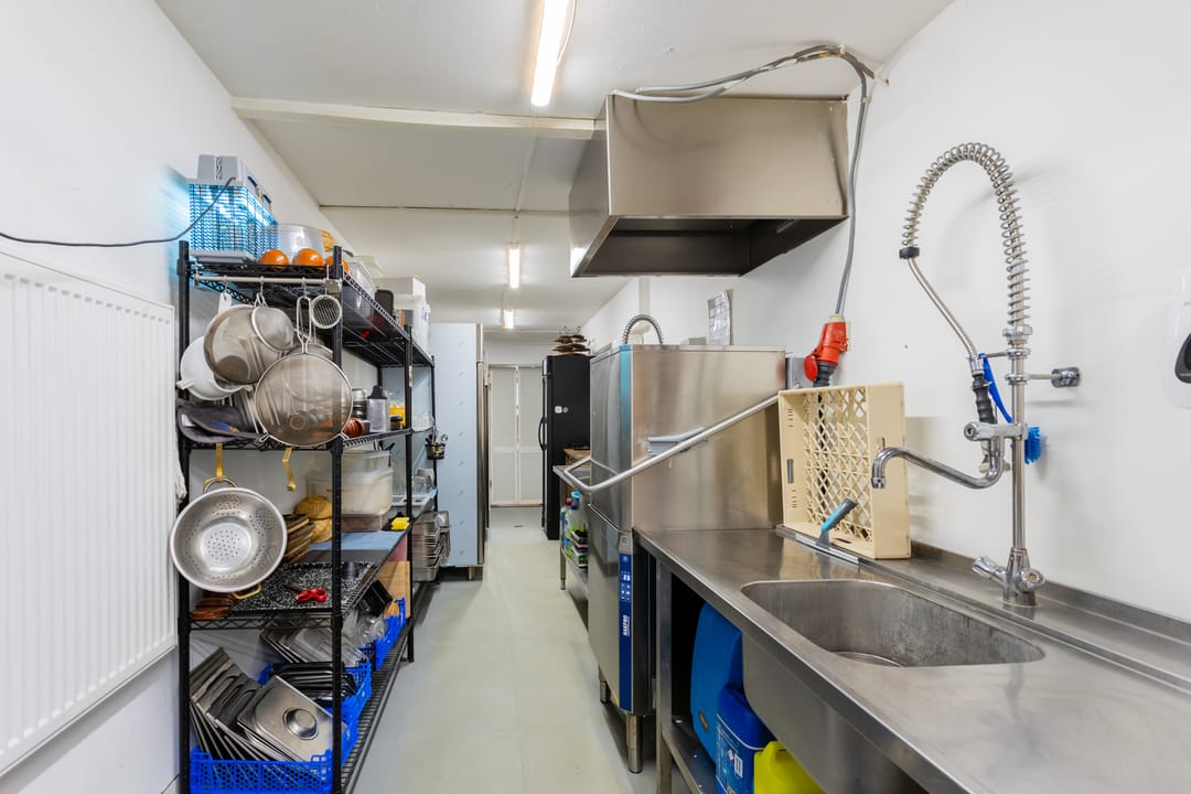 Entree via gevelterras naar sfeervolle restaurantruimte. Modern, doch voorzien van traditionele Oekraïense invloeden. Verder naar achteren is er een bar gesitueerd, toiletten en de doorgang naar de keuken. Deze is bereikbaar vis de klapdeuren en de spoelkeuken. De keuken is recent gerenoveerd en vernieuwd. Datzelfde geldt eigenlijk voor de gehele locatie. Aan de achterzijde van het object is middels een overkapping extra ruimte gecreëerd voor enige opslag.