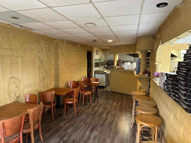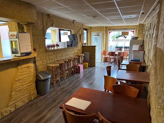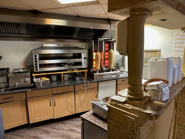 Direct aansluitend is de kleine eenvoudige keuken gelegen, wat zorgt voor een praktische en efficiënte routing tussen het restaurantgedeelte en de bereidingsruimte.