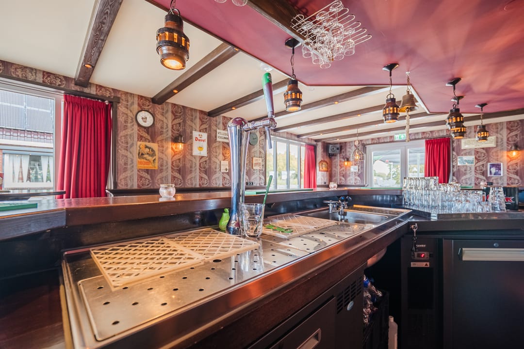 - De winkel/horecaruimte (zaal + café/eet-café) en het woonhuis worden in één transactie aangeboden: zowel exploitatie-rechten als het onroerend goed (bedrijfspand + woning + terrein met ligplaatsen) gaan over.