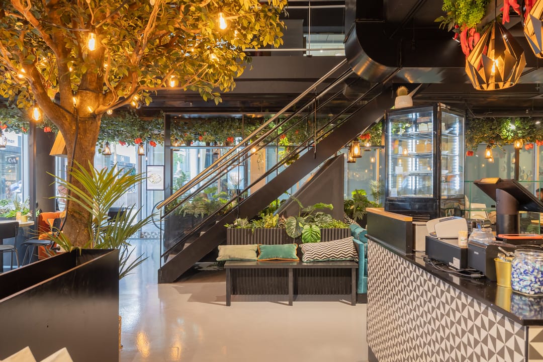 In de huidige opstelling zijn er 85 zitplaatsen op de begane grond. De eerste verdieping wordt voornamelijk gebruikt als opslagruimte. Het gevelterras biedt plaats voor ca. 12 gasten.