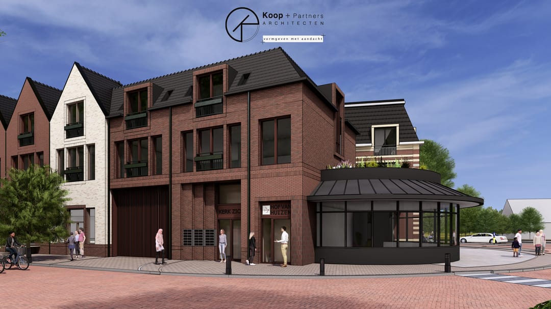 Het nieuwe entreegebouw is geïnspireerd op het voormalige postkantoor dat in de jaren '80 werd gesloopt, een gebouw dat volgens velen nooit had mogen verdwijnen. Door dit prachtige pand als inspiratie te gebruiken, herleeft een stukje historie van Huizen op deze plek.