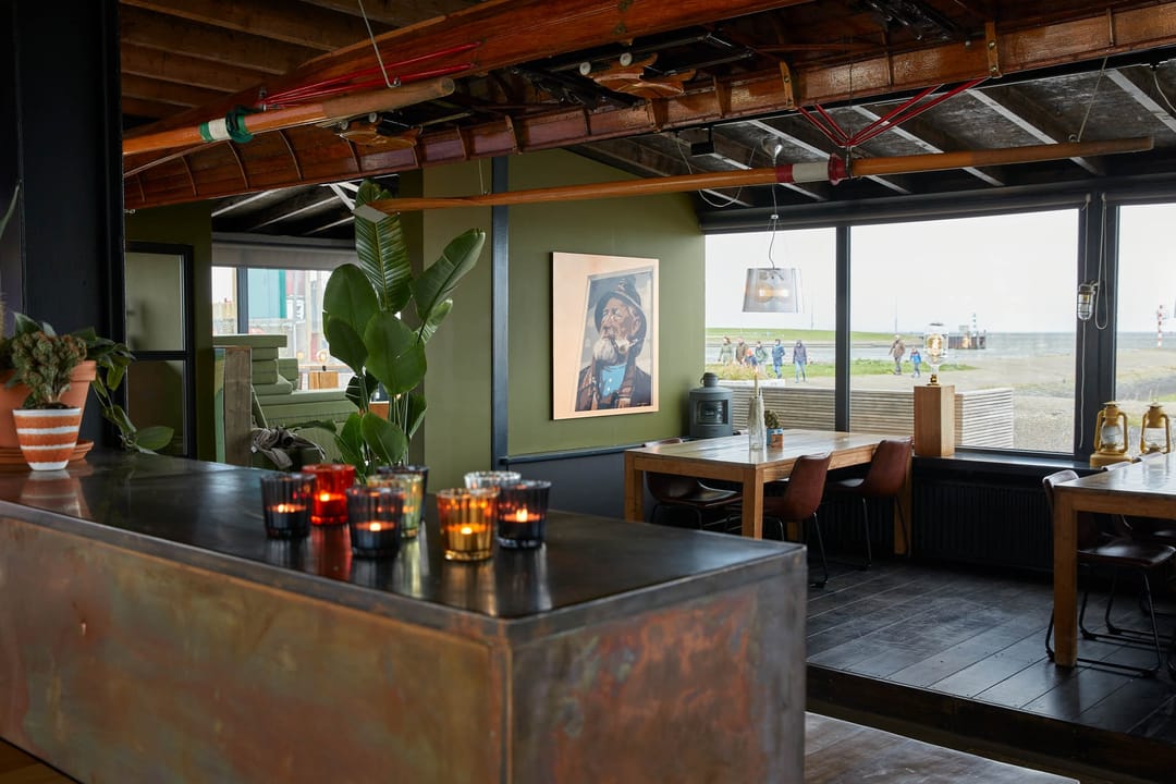 Het restaurant is recent verbouwd en beschikt over twee restaurantruimtes met 120 zitplaatsen en een terras met 80 zitplaatsen, waardoor de locatie zich ook goed leent voor zakelijke events, private dining of feesten en partijen. Er is een uitgebreide keuken en een terras pal aan de Waddenzee, met aan de zijkant van het gebouw een uniek uitzicht.