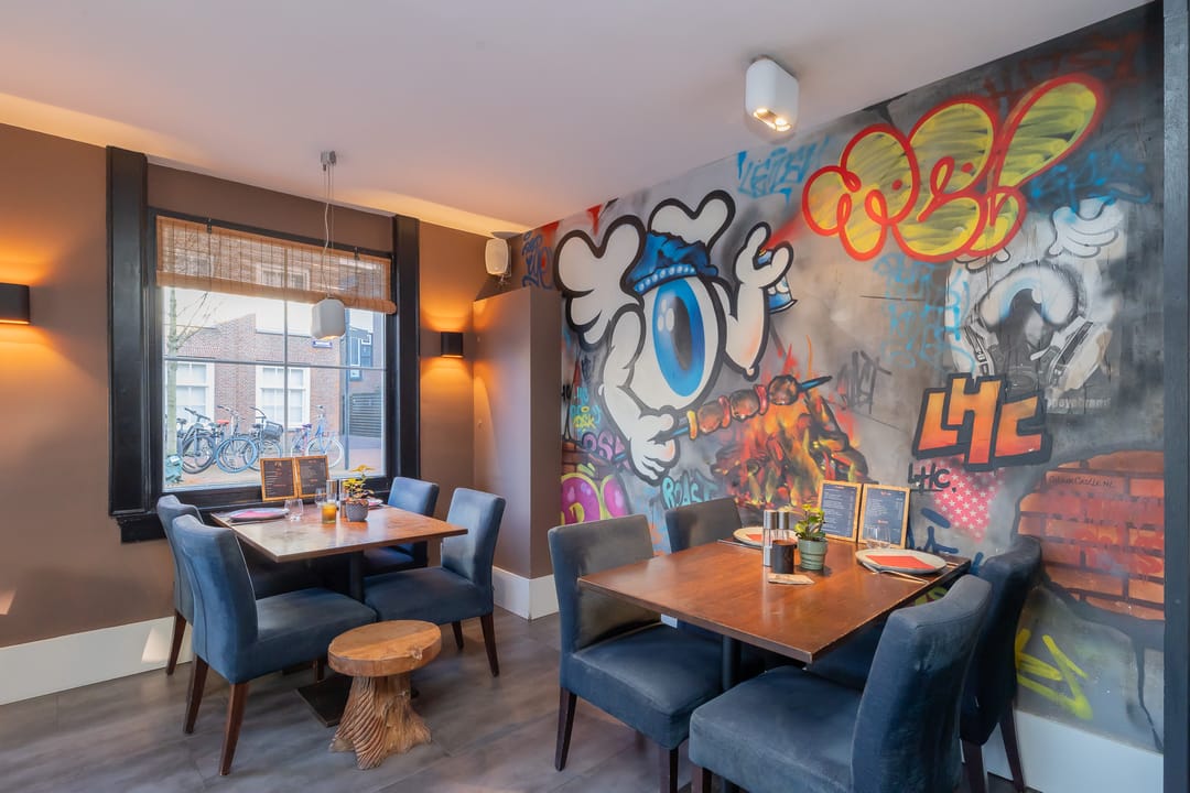 Restaurant op de hoek van horecastraat Noordeinde Leiden
