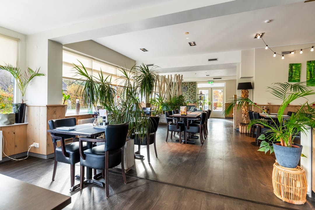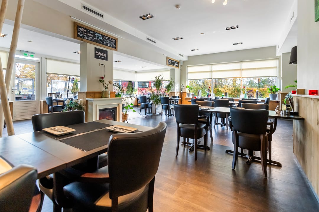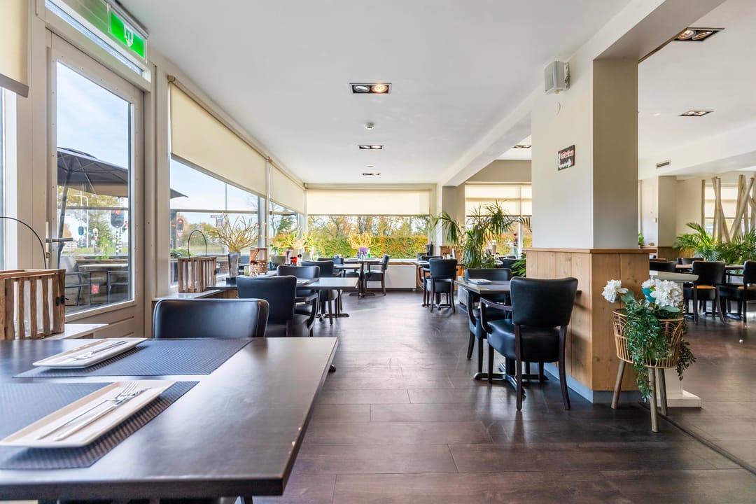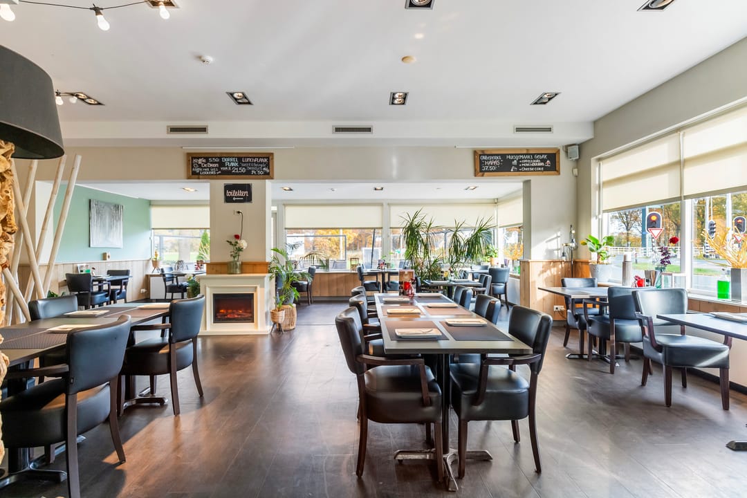 De restaurantvloer biedt ruimte aan circa 60 gasten binnen en sluit qua stijl perfect aan bij het karakter van het pand: een landelijke sfeer, originele details en grote raampartijen. Aan de restaurantzijde bevinden zich de heren-, dames- en mindervalidentoiletten.