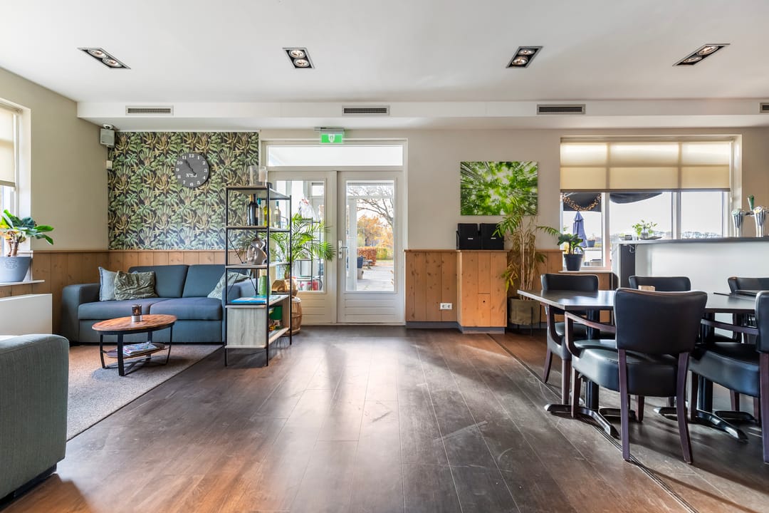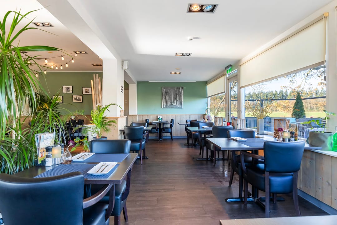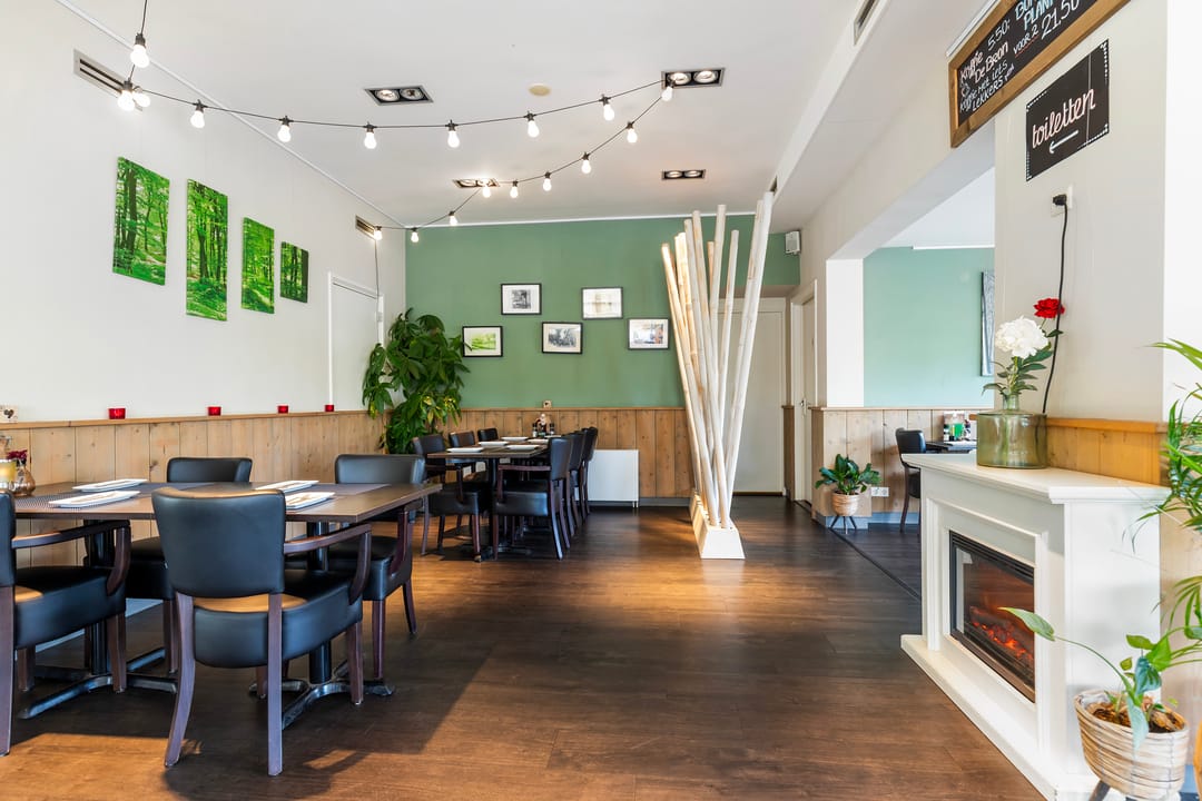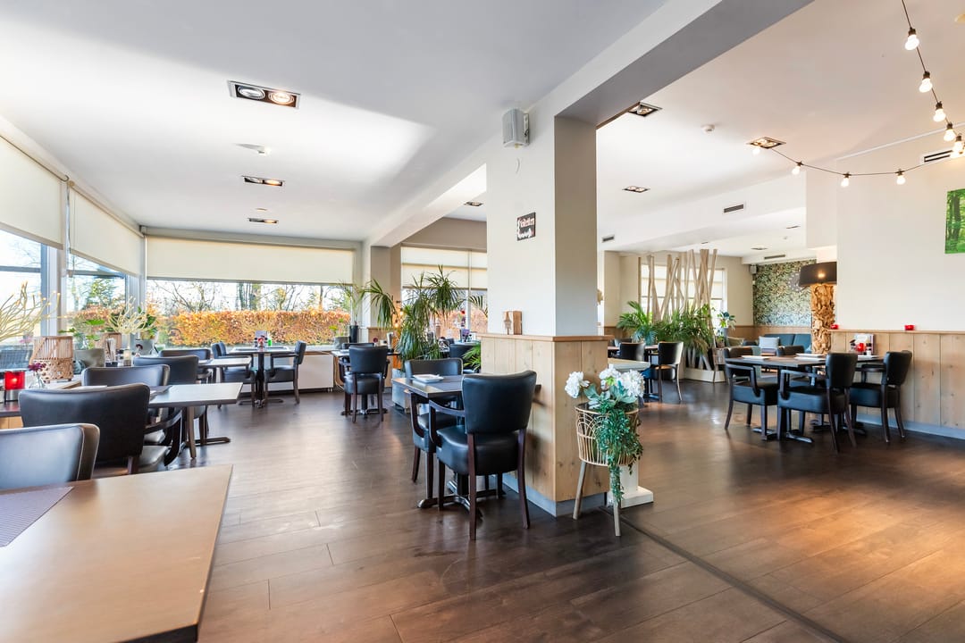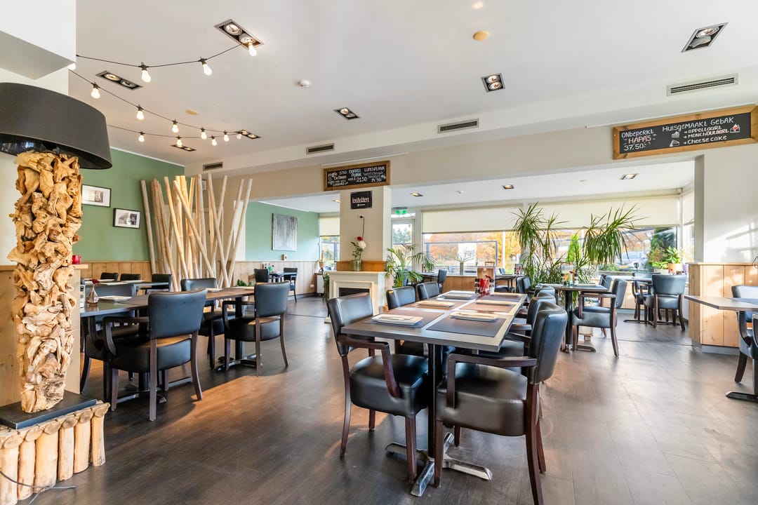 De restaurantvloer biedt ruimte aan circa 60 gasten binnen en sluit qua stijl perfect aan bij het karakter van het pand: een landelijke sfeer, originele details en grote raampartijen. Aan de restaurantzijde bevinden zich de heren-, dames- en mindervalidentoiletten.