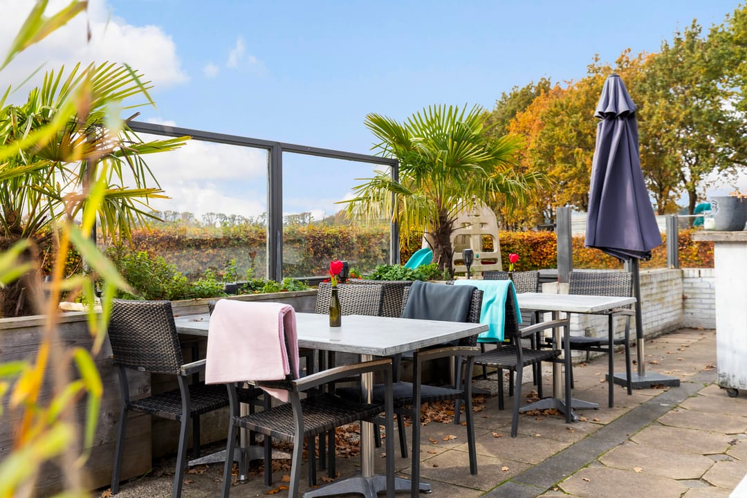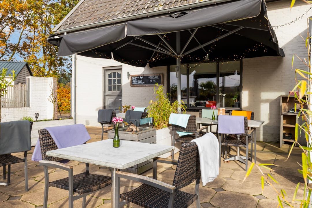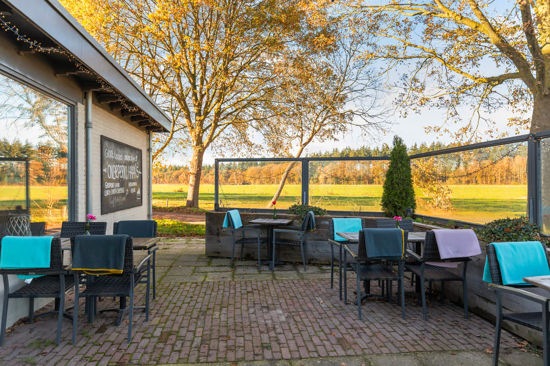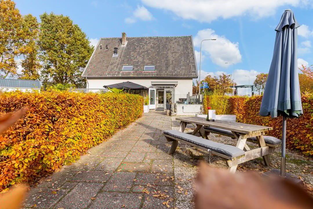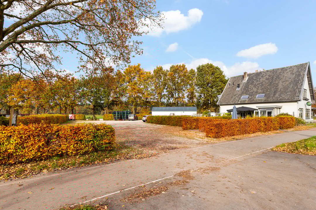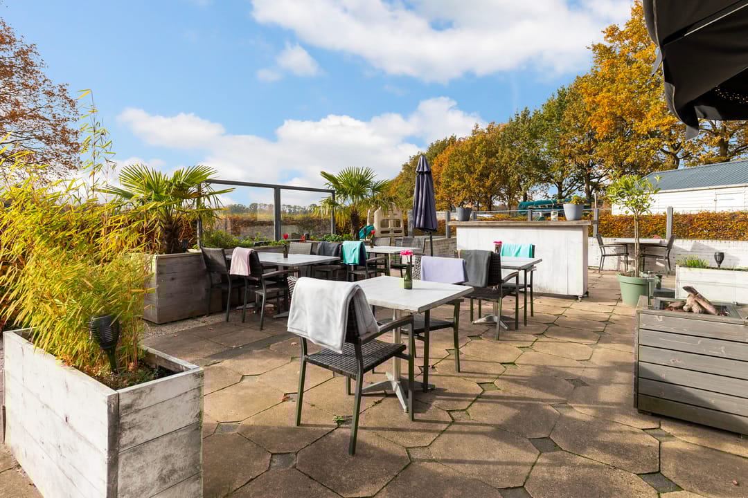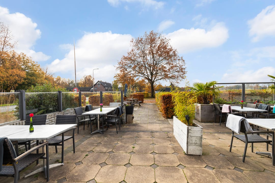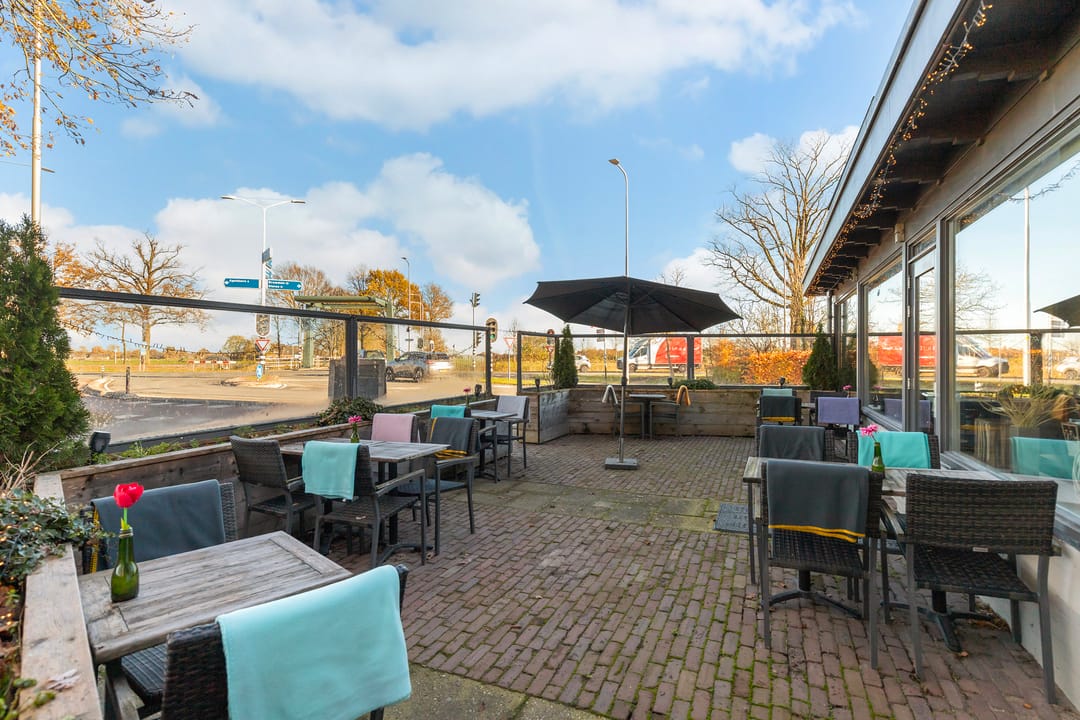 Het perceel van 1.727 m² is royaal van opzet en biedt een groot buitenterrein, tuin en twee terrassen. In combinatie met de binnenruimte kunt u hier 80 tot 100 gasten ontvangen. De buitenruimte leent zich uitstekend voor horeca, evenementen of privégebruik.
