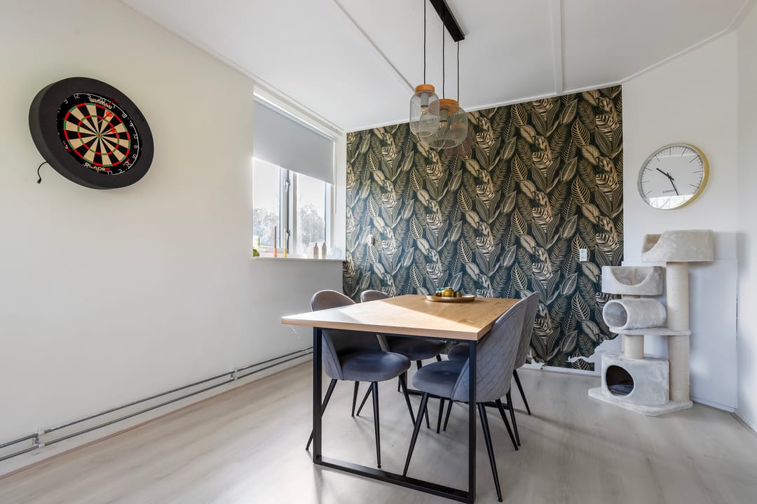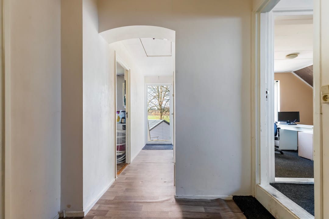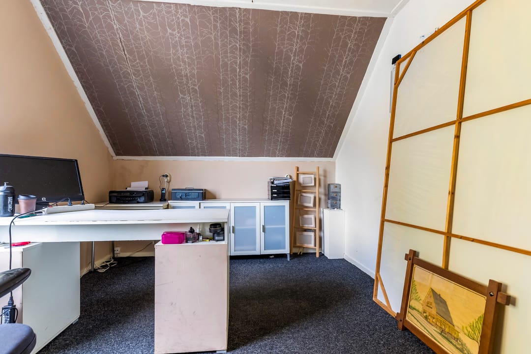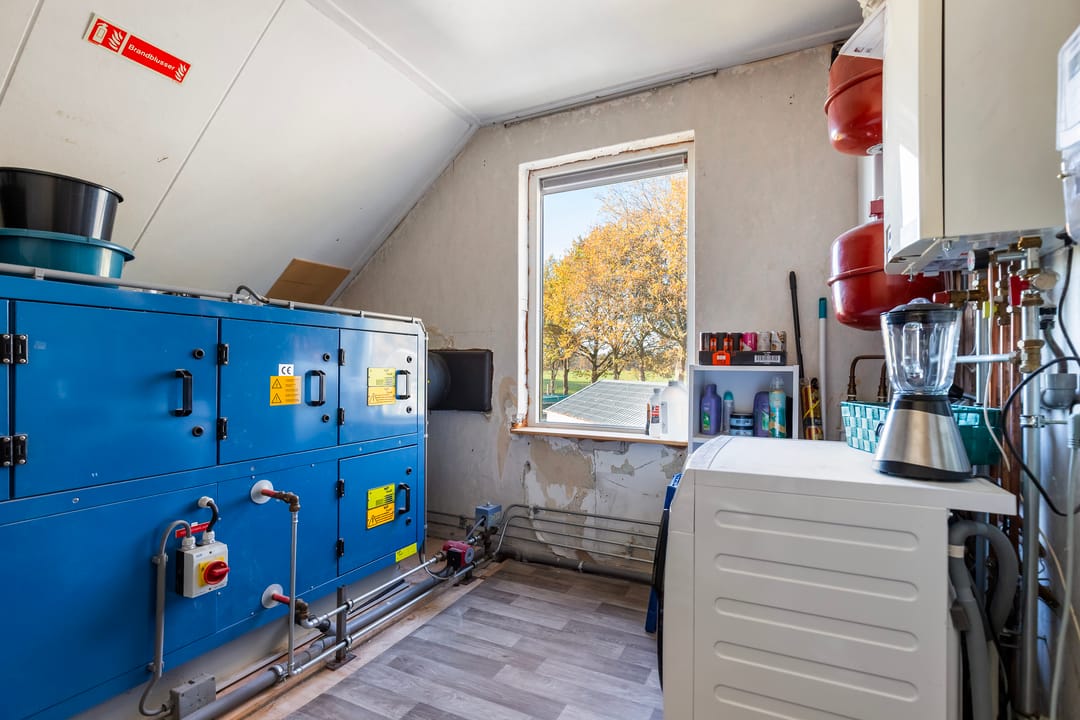 De bovenwoning is bereikbaar via een vaste trap aan de zijgevel. Hier treft u naast de woonruimten ook een installatieruimte, een personeelsaula en een ingericht kantoor. De bovenwoning beschikt over vier slaapkamers, een ruime woonkamer en een gesloten keuken. Dit maakt de verdieping zowel geschikt voor dubbele bewoning, personeelshuisvesting als integratie in een toekomstige woonbestemming.