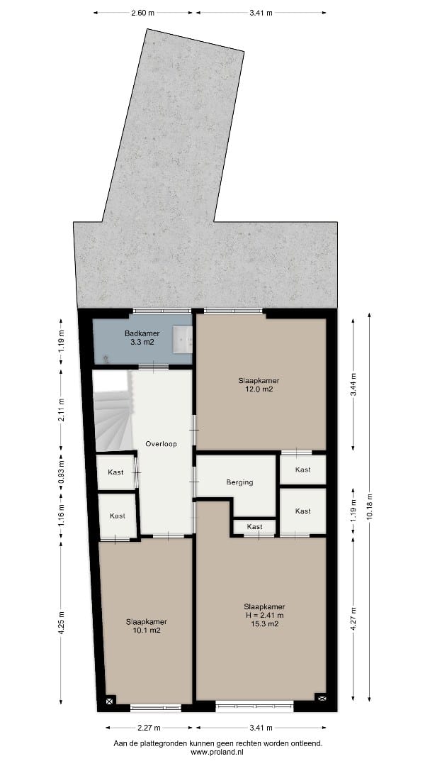 Eerste verdieping: overloop met vaste kastruimte, berging, badkamer en drie slaapkamers voorzien van vaste kasten.