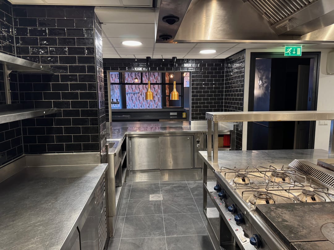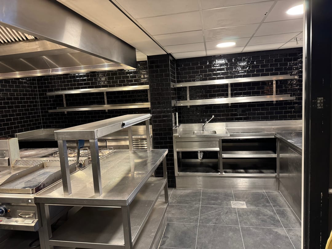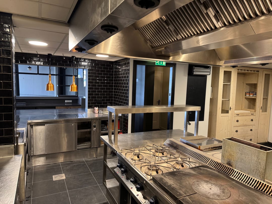 Voorzien van een professionele keuken, verschillende ruimten (waaronder een grote opslag met koel- en vriescel) en een ruim terras.