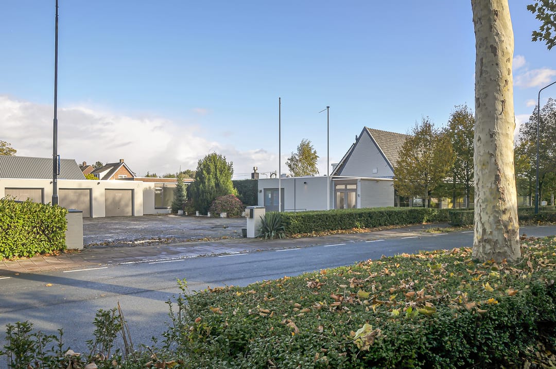 Het perceel omvat ca. 1.100 m² met terras, parkeergelegenheid voor ca. 12 auto’s en drie garageboxen.