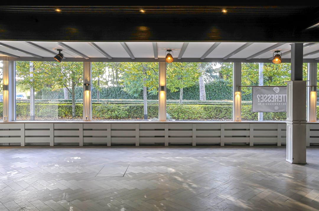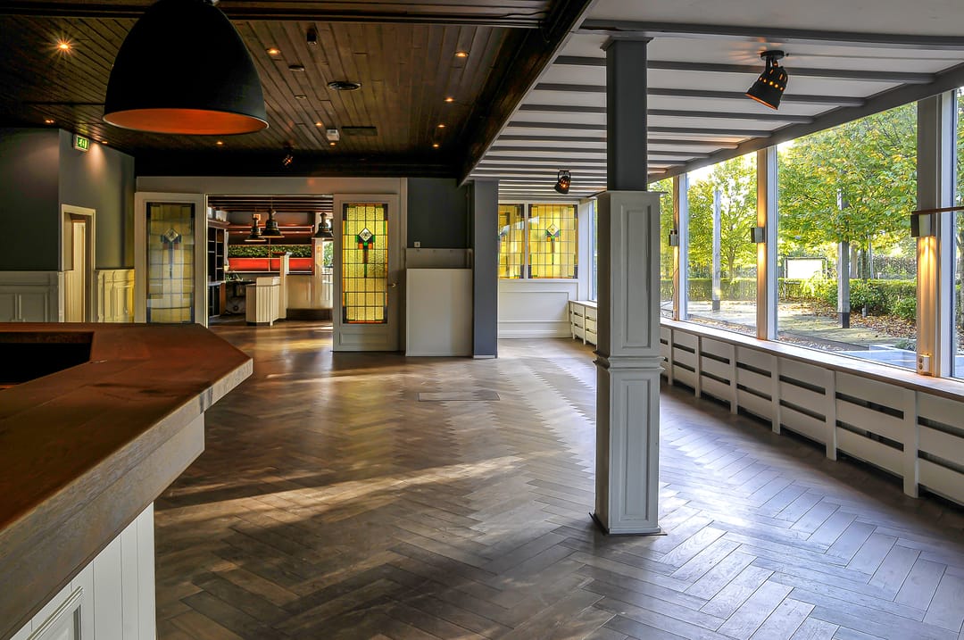 Via de entree kom je in het eerste restaurantgedeelte (ca. 182 m²) met bar en warme uitstraling. Via een glas-in-loodscheiding met openslaande deuren bereik je het tweede restaurantgedeelte (ca. 83 m²) met een tweede bar. Deze ruimte sluit aan op het terras (ca. 133 m²) aan de voorzijde.