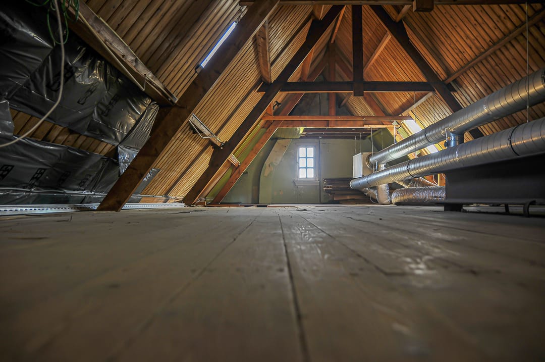 De zolder, die zich uitstrekt over het volledige restaurantgedeelte (ca. 240 m²), biedt volop bergruimte en mogelijkheden voor uitbreiding of herinrichting.