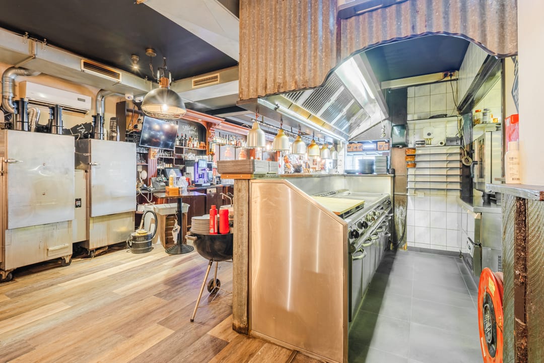 Achter de bar bevindt zich nog een tweede restaurant gedeelte exclusief aan hoge tafels. Hier bevindt zich ook nog een ingang voor rolstoelgebruikers. Tussen deze twee delen in bevindt zich de keuken, en hal naar de toiletten en de overige opslagruimten. De keuken is volledig ingericht met onder andere twee stoom ovens, twee dubbel frituren, koelwerkbanken en spoelkeuken.