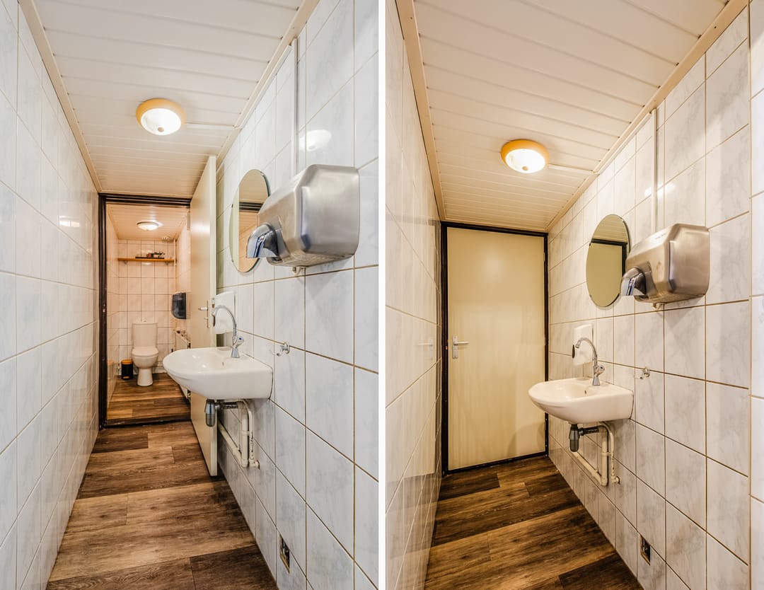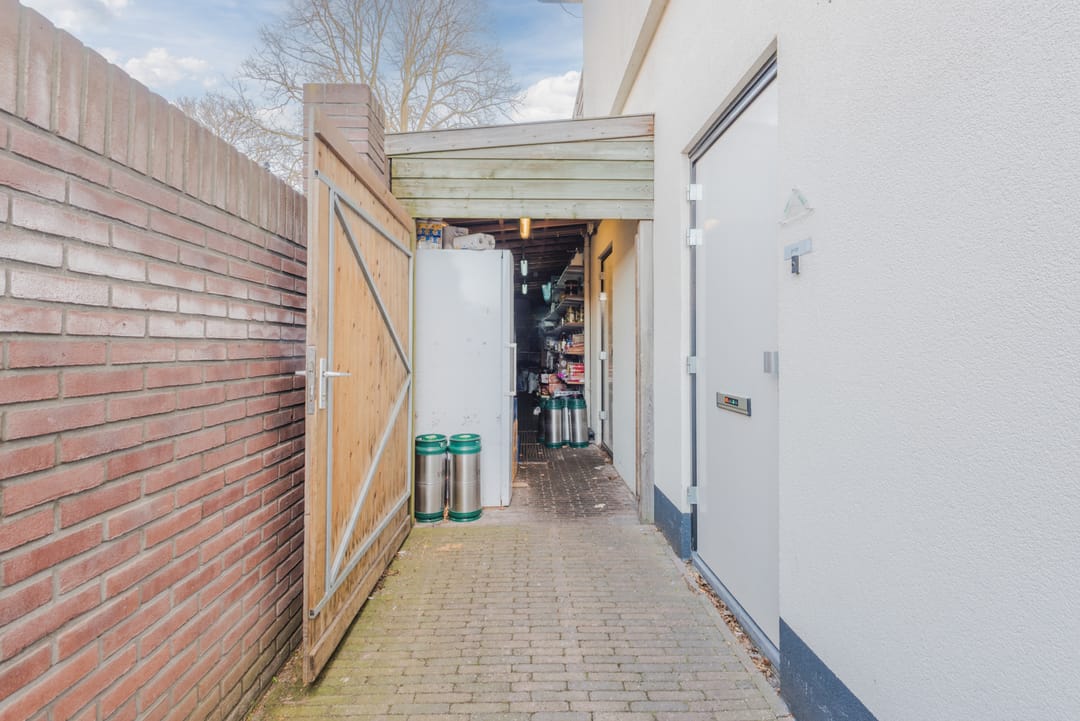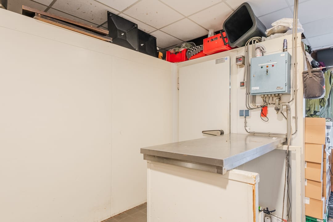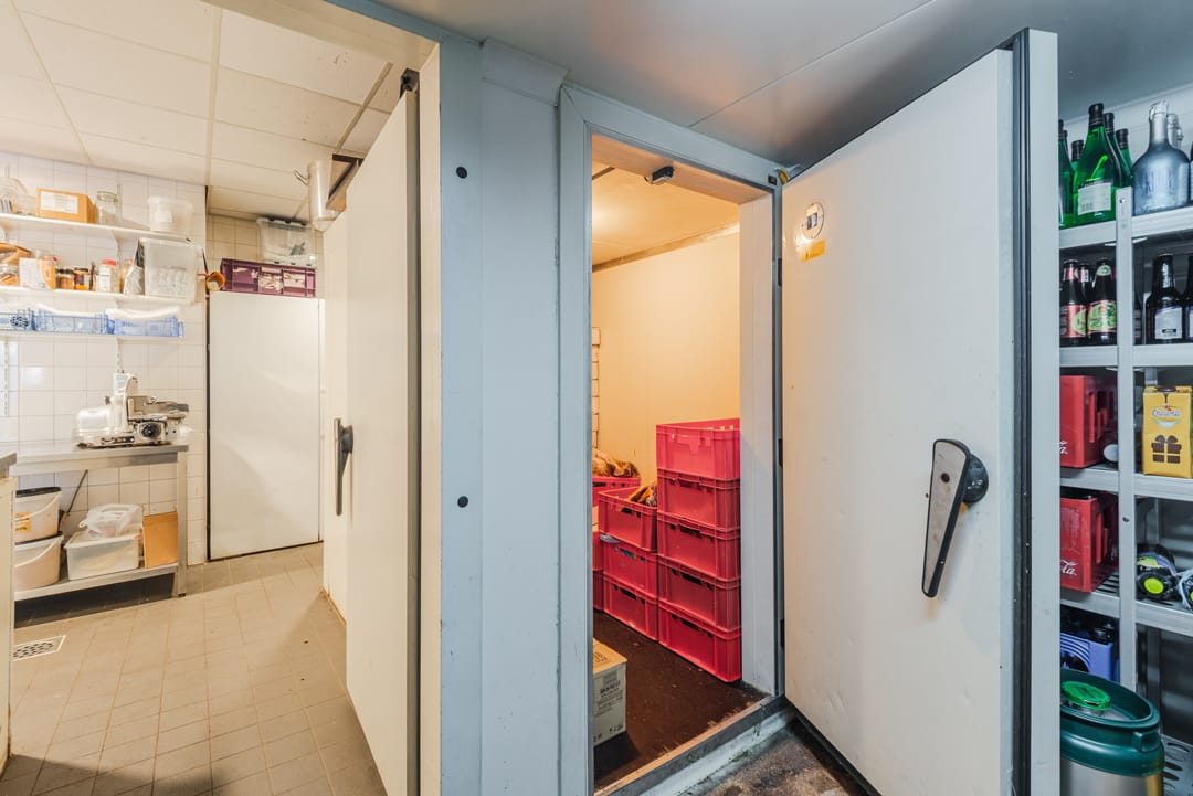 Naast de keuken bevindt zich nog een bijkeuken met toegang tot het een ruime opslag welke zich in de basis buiten bevindt, maar goed is afgesloten tegen de elementen.