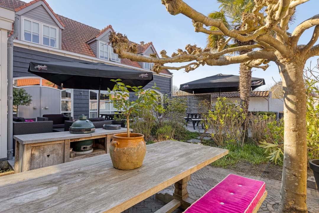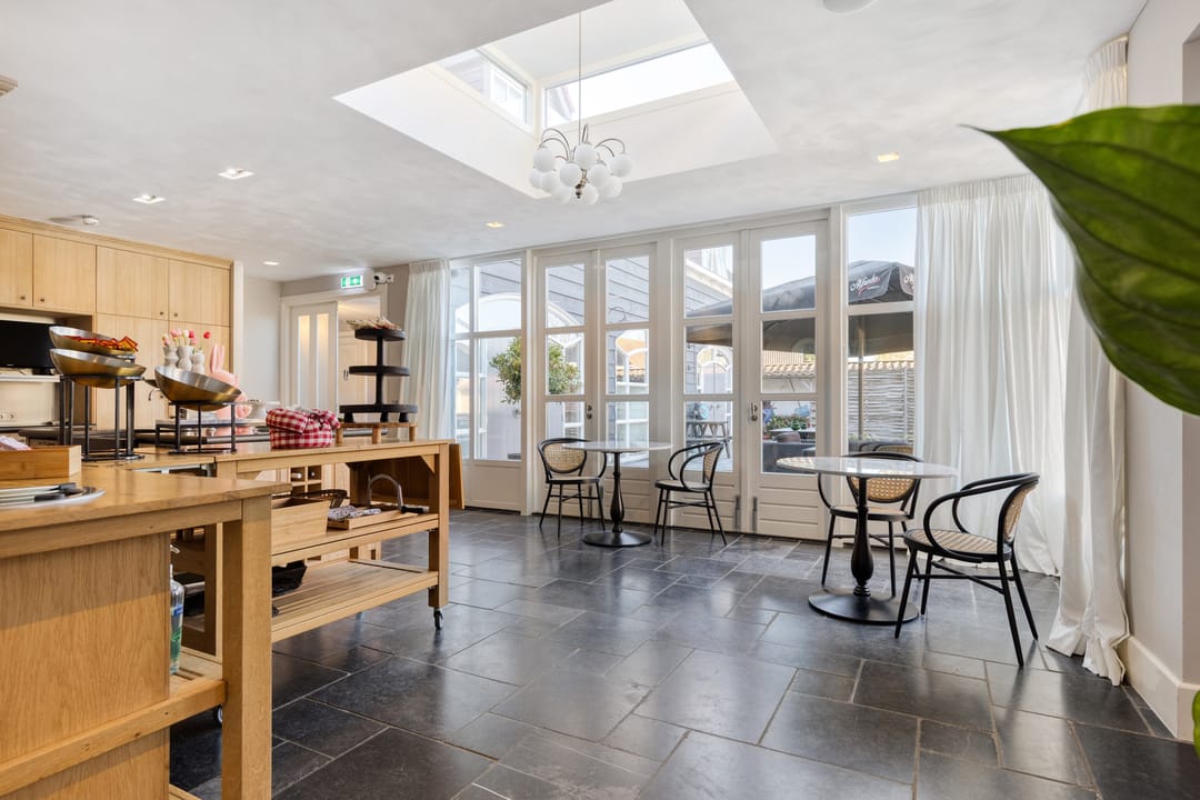 ’s Ochtends begint de dag in de sfeervolle ontbijtruimte, waar rust en comfort samenkomen. Aan de voorzijde nodigt het terras uit tot een kop koffie in de ochtendzon, terwijl het tuinterras aan de achterzijde juist een oase van rust biedt, beschut en groen, weg van de dynamiek van het centrum.