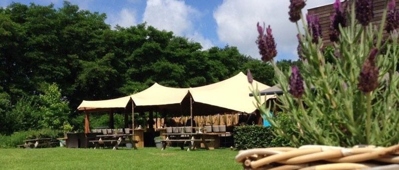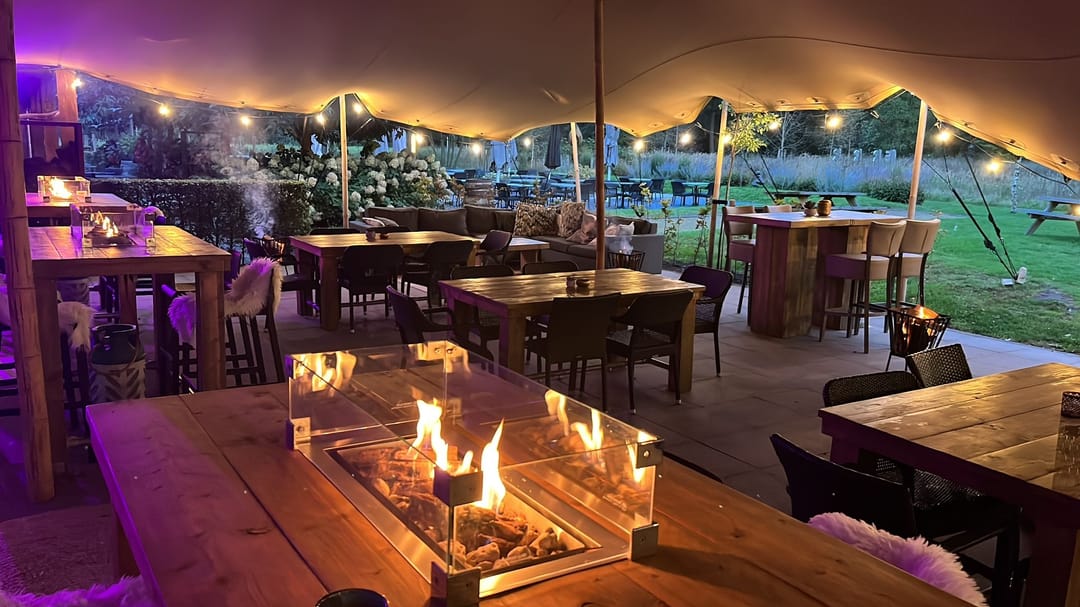 Multifunctioneel: sfeervol restaurant, geluidswerende zaal, lounge en royale buitenruimtes die onderling verbonden zijn.