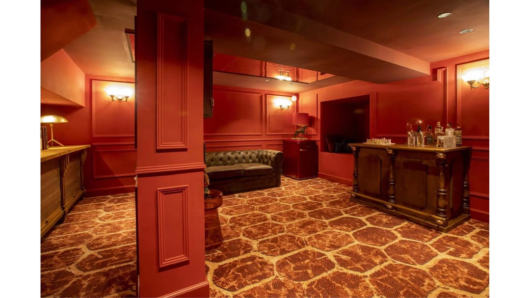 De begane grond bestaat uit meerdere ruimtes, die onderling goed op elkaar zijn afgestemd: een grote bar met barstoelen en diverse knusse zitjes, afgescheiden vergader units, een grote tuinkamer en een “mancave”, alles zeer kleurrijk ingericht met mooie decoratie aan de wanden. In het souterrain is nog een ruime hal waarin zich ook de toiletten en opslag bevinden en nog een extra bedrijfsruimte van ca 18 m2. Momenteel is er geen (ingerichte) keuken, deze kan wel eenvoudig gerealiseerd worden.