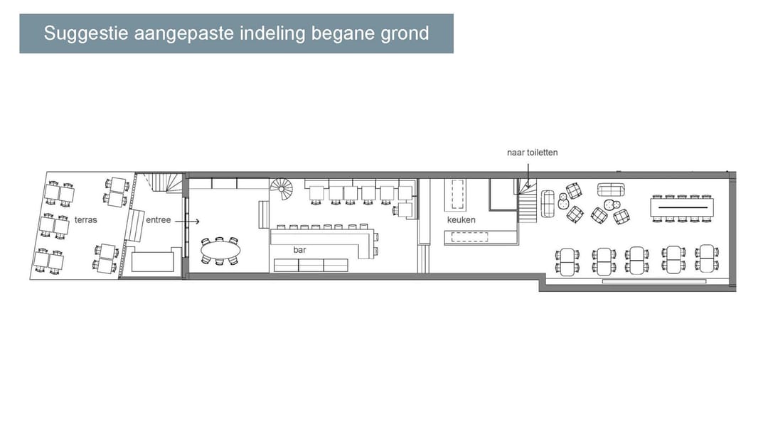 De nieuwe ondernemer kan hier naar eigen inzicht zijn eigen concept(en) invoeren. Denk daarbij aan bijv. een wijn/cocktailbar, fine-dining restaurant of Franse bistro.