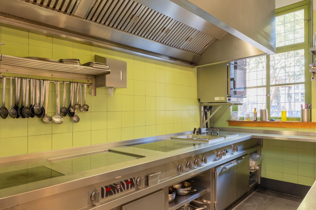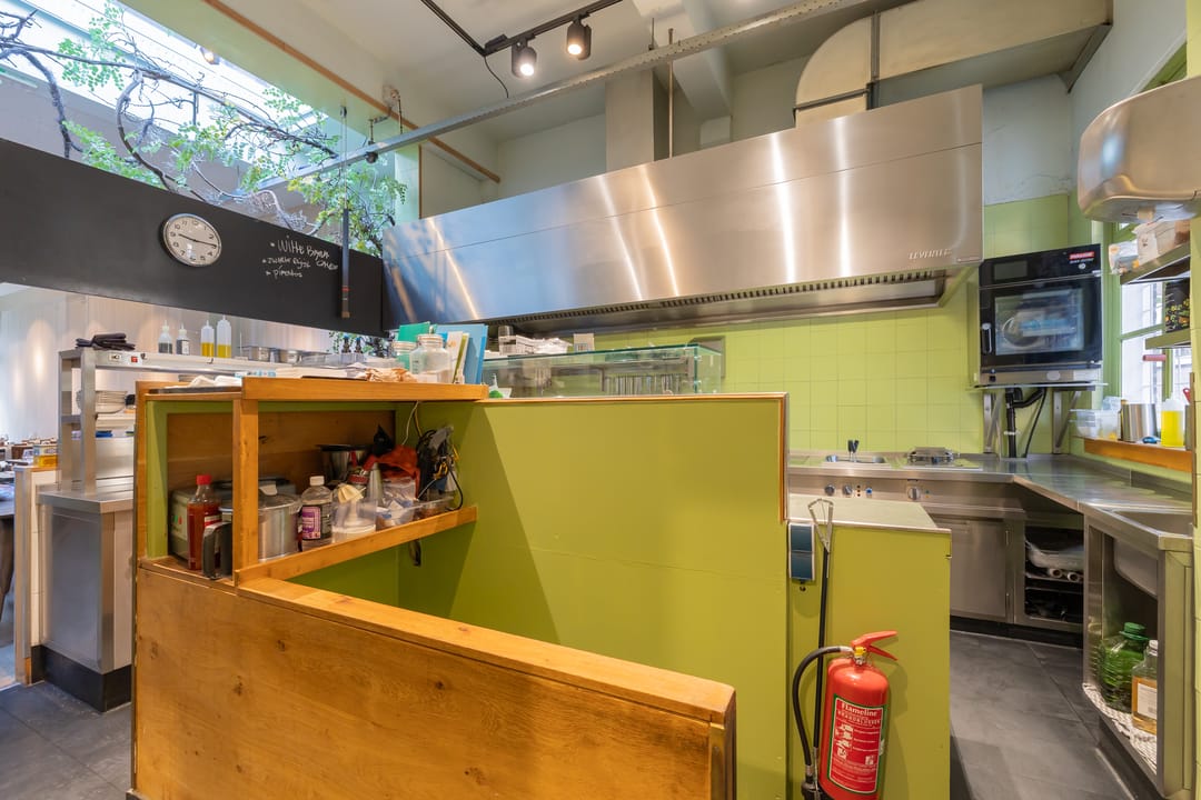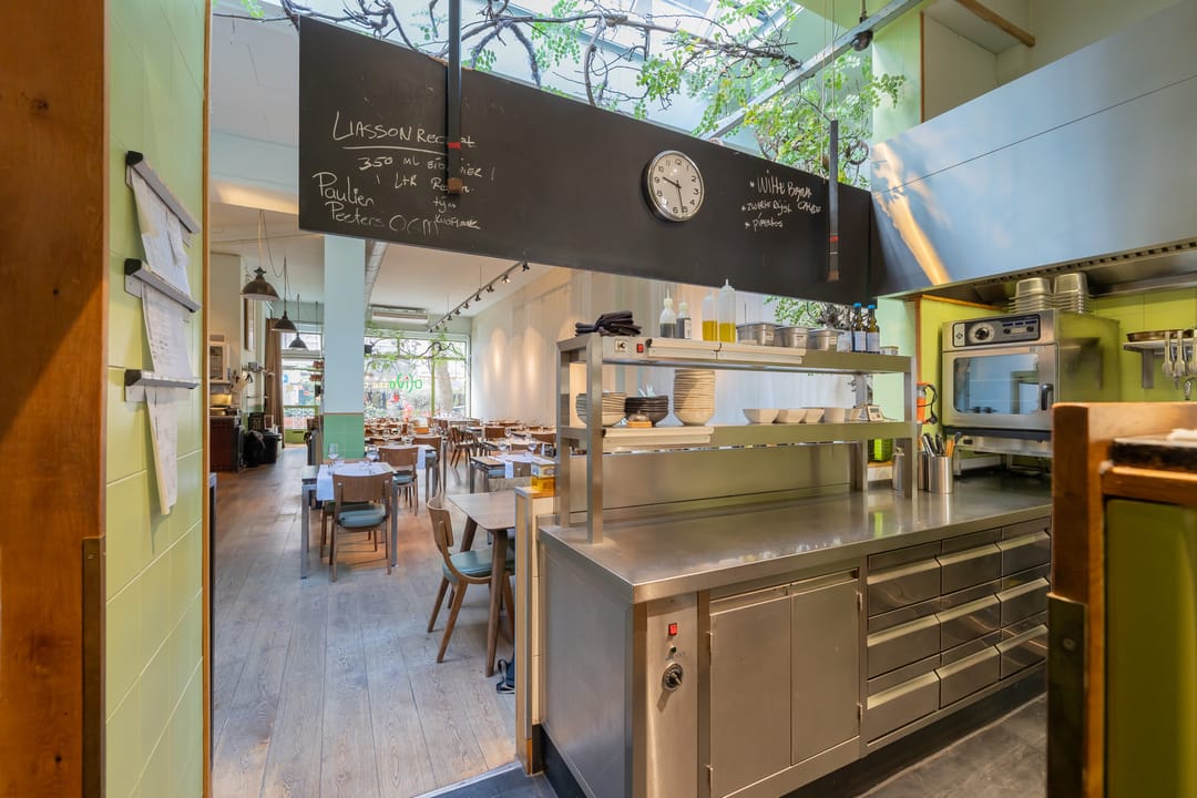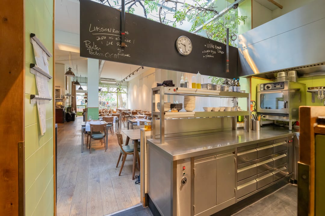 De open keuken is achterin de zaak gelegen. Er zijn 52 zitplaatsen. De toiletten zijn in het souterrain gelegen. Hier was tevens een private dining room/kookstudio (12 zpl.) gevestigd. Deze is nu in gebruik als opslagruimte.
