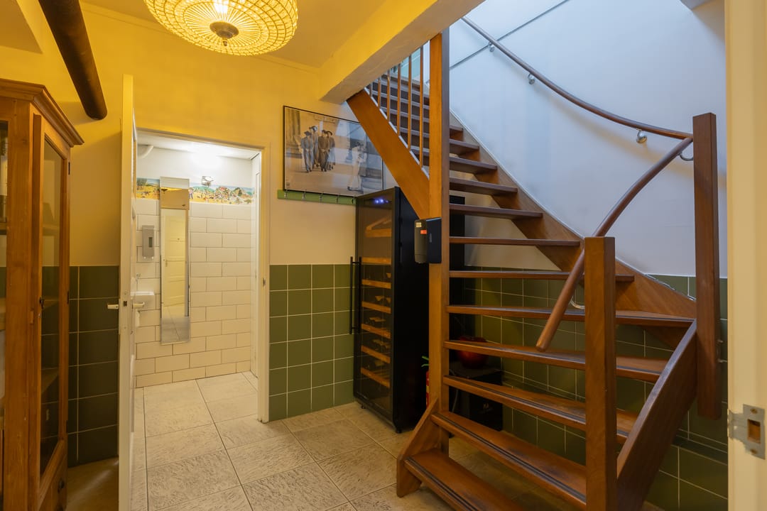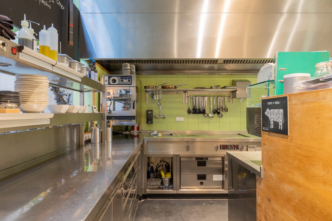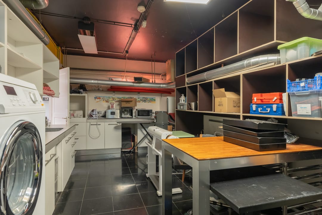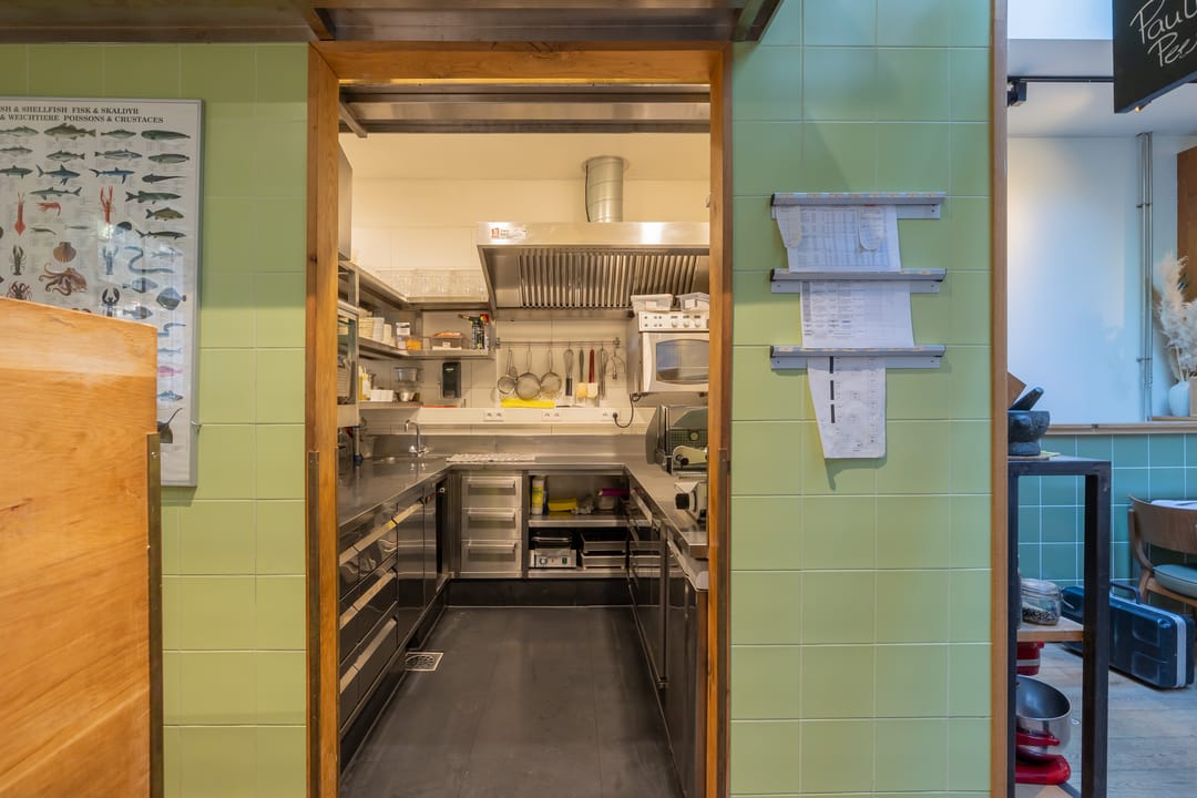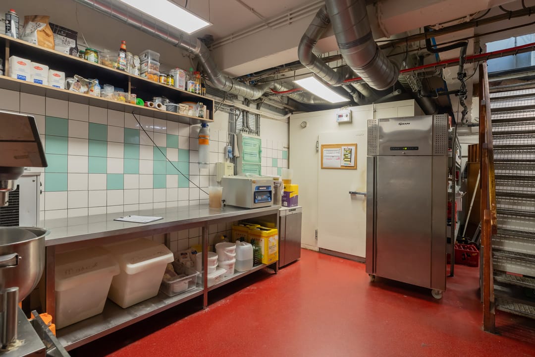 De open keuken is achterin de zaak gelegen. Er zijn 52 zitplaatsen. De toiletten zijn in het souterrain gelegen. Hier was tevens een private dining room/kookstudio (12 zpl.) gevestigd. Deze is nu in gebruik als opslagruimte.