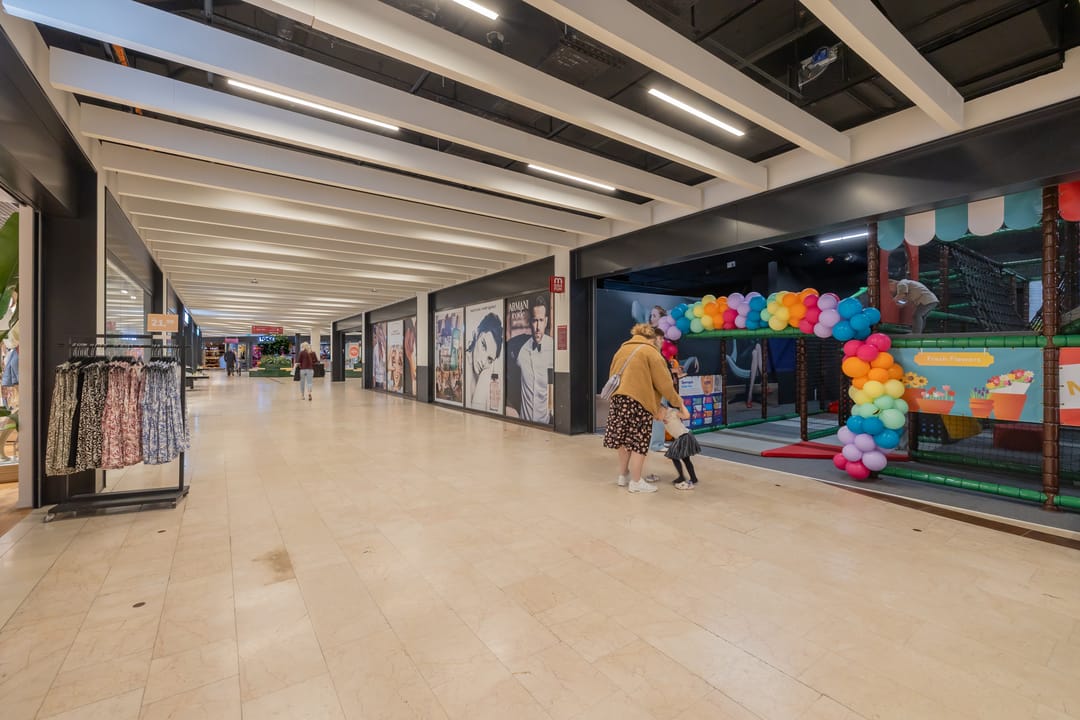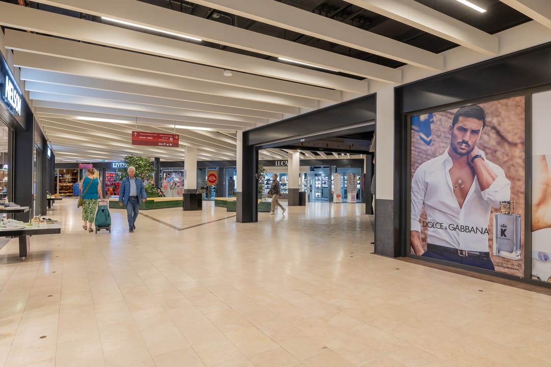 Het overdekte winkelcentrum heeft een ruim winkelaanbod en gratis parkeergelegenheid.