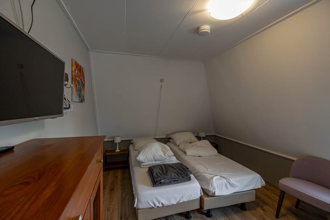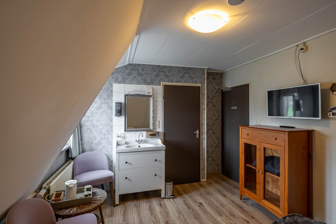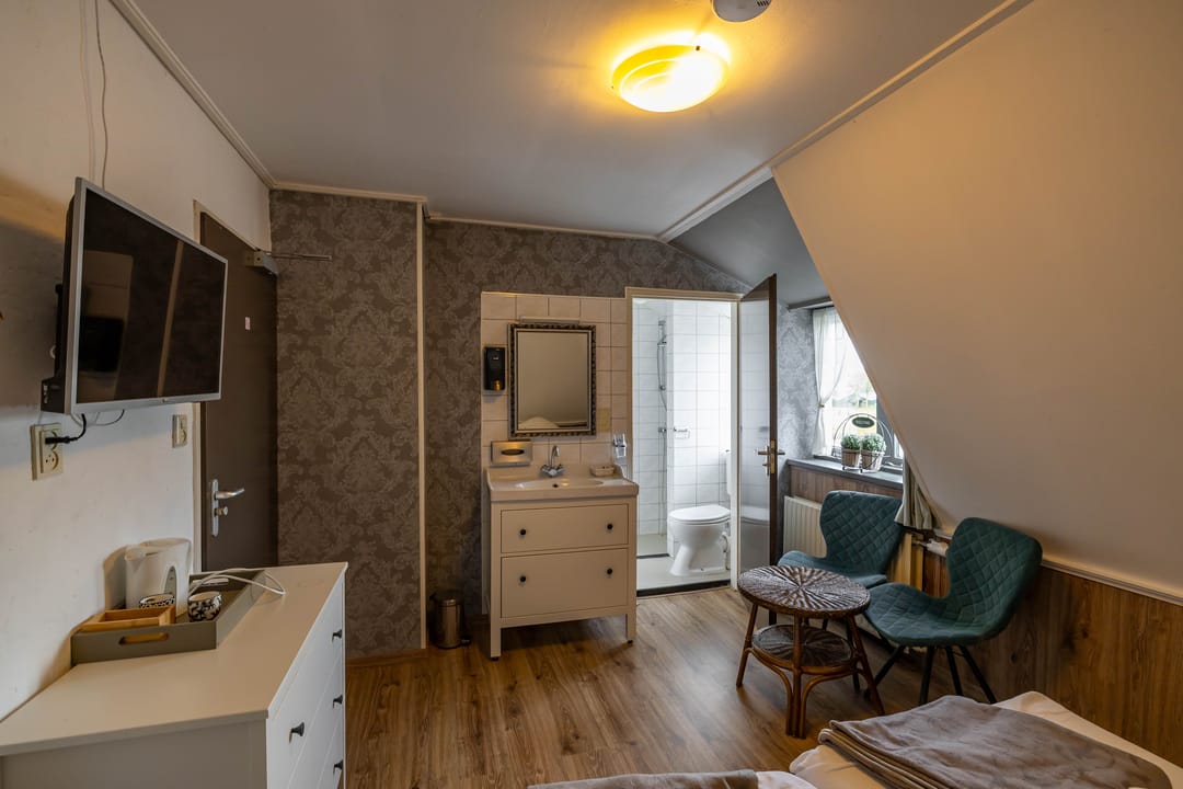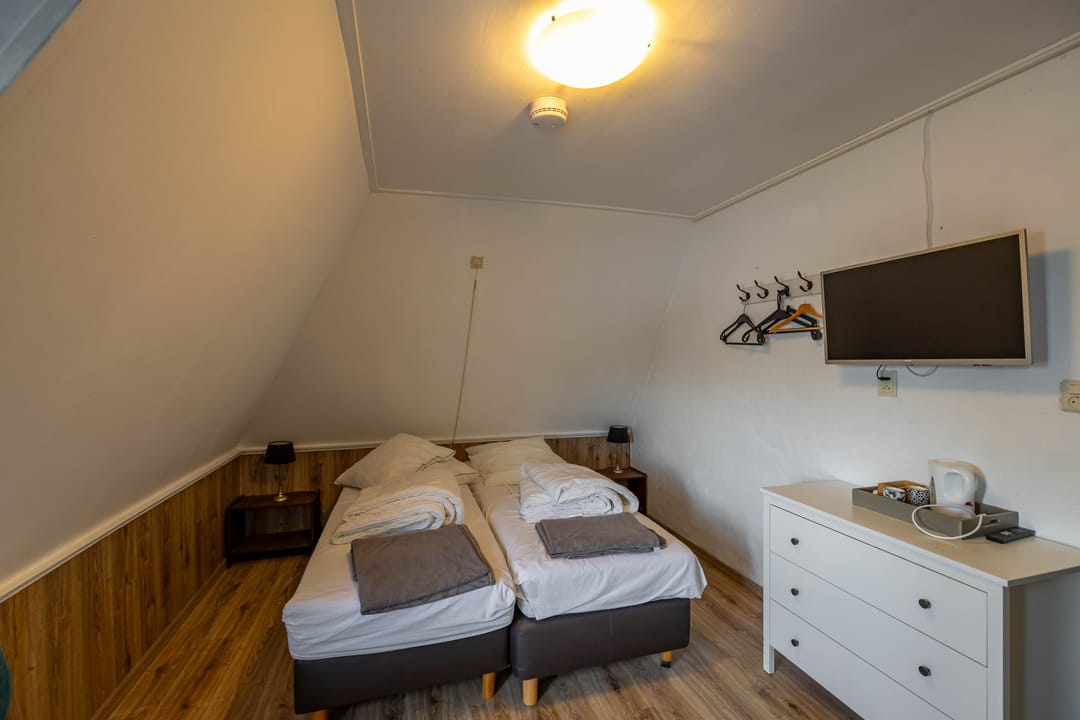 In totaal zijn er nu 6 hotelkamers, waaronder 4 x 2 persoons kamers met eigen badkamer en 2 x 1 persoons kamers met doucheruimte op gang. De kamers zijn verzorgd en compleet ingericht. Er bestaat bovendien de mogelijkheid om het naastgelegen pand bij de exploitatie te betrekken.