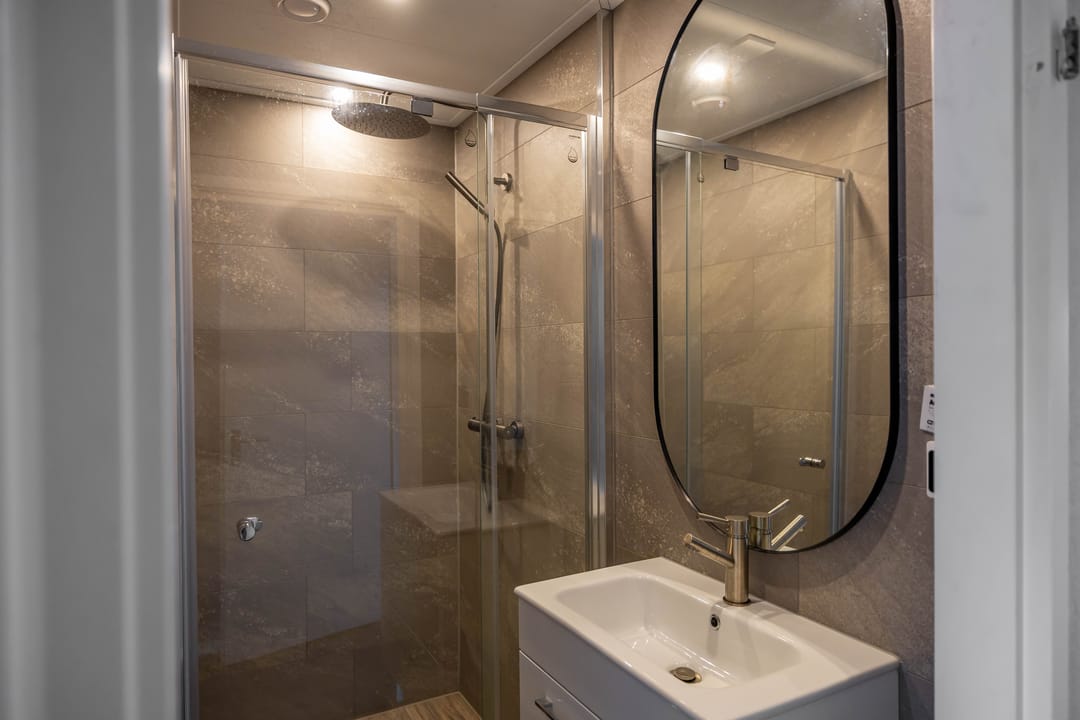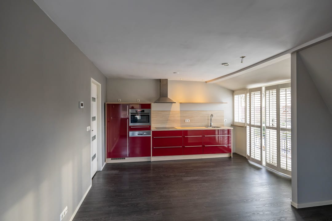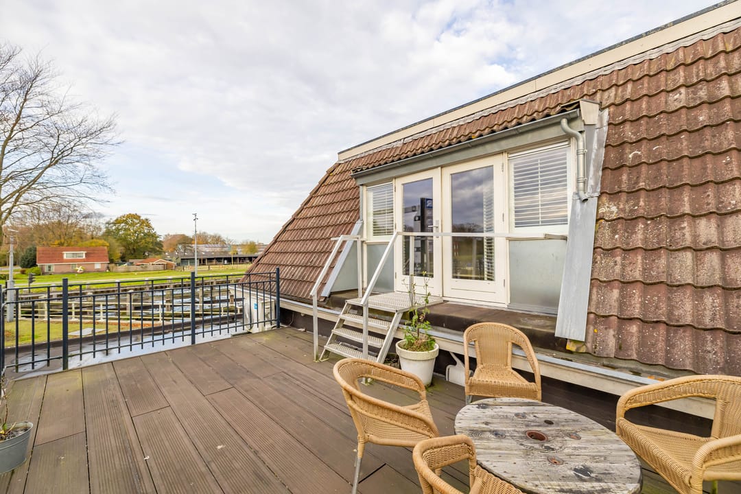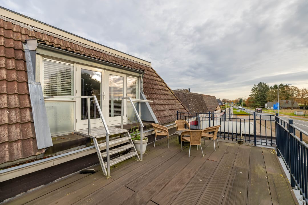 Het voorste gedeelte op de 1e verdieping is een woonhuis van gemaakt met woonkamer met een ruim balkon, open keuken, twee ruime slaapkamers, zeer nette badkamer en een aparte toiletruimte. De woning is thans alleen van binnenuit toegankelijk, echter door een eenvoudige aanpassing kan deze van buitenaf toegankelijk gemaakt worden. Ook kan er besloten worden om van het woongedeelte meerder hotelkamers van te maken.