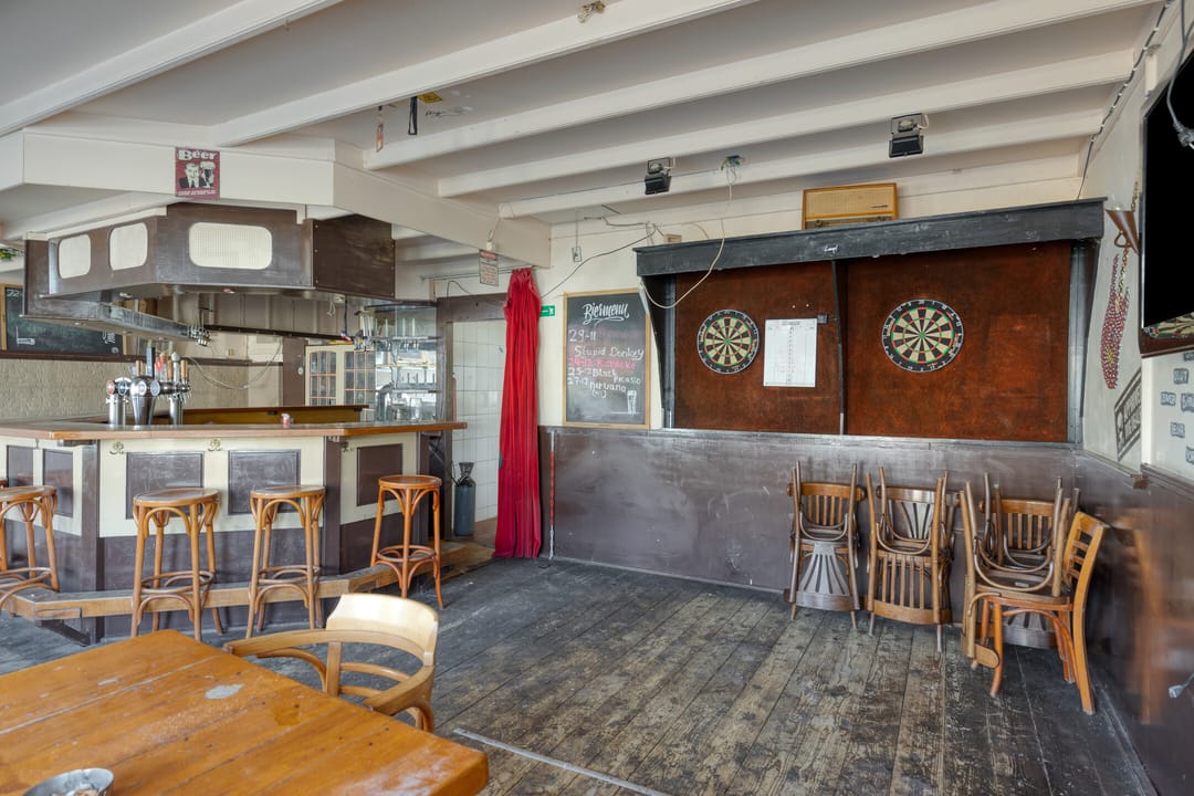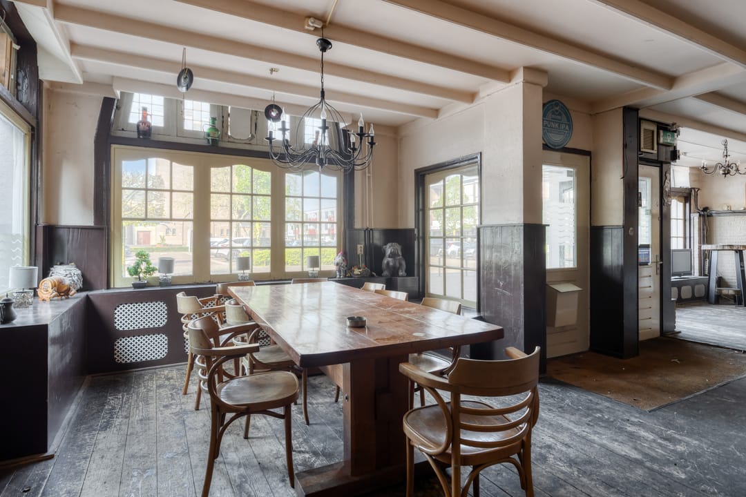 Dit markante hoekpand dateert uit circa 1900 en beschikt over een gebruiksoppervlakte van circa 350 m², verdeeld over een horecaruimte van circa 212,50 m² op de begane grond en een bovenwoning van circa 137,50 m² op de verdieping.