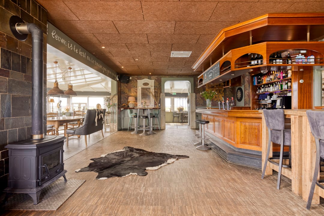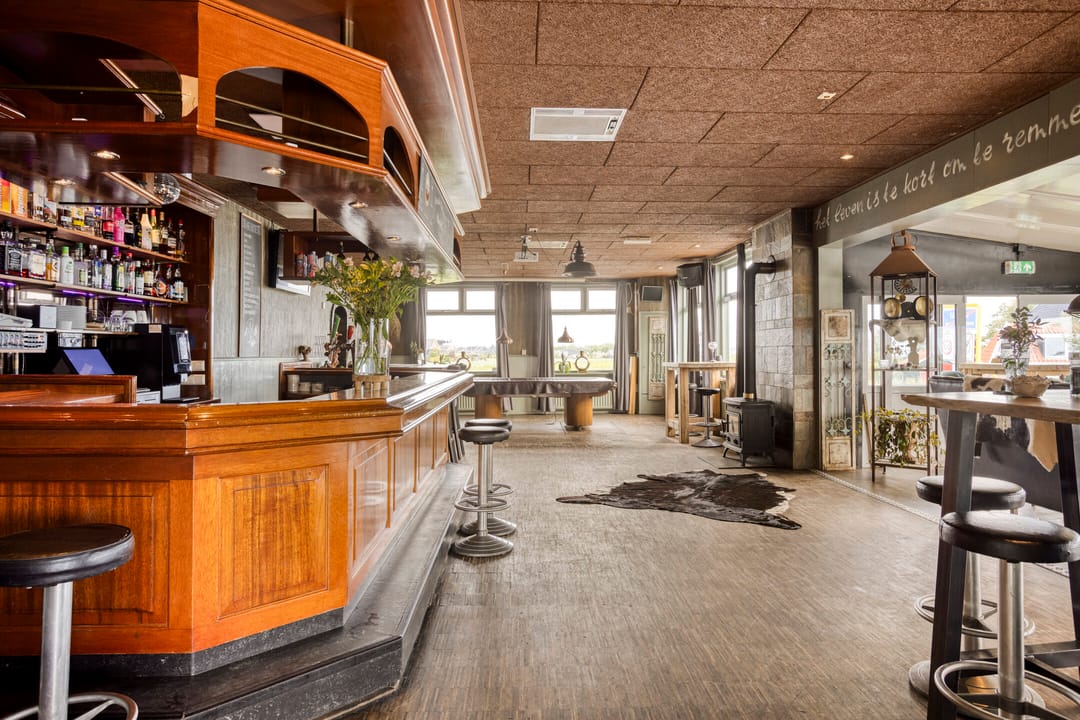 Aan de voorzijde bevindt zich een terras met diverse zitplaatsen en uitzicht over de omgeving. Binnen is er een sfeervol café-restaurant met bar en zitgelegenheid. Daarnaast beschikt het pand over een separate ruimte voor feesten en partijen, beide met eigen bar en tapinstallatie. Het bedrijf is voorzien van een praktisch ingerichte keuken en voldoende opslag- en bergruimte.