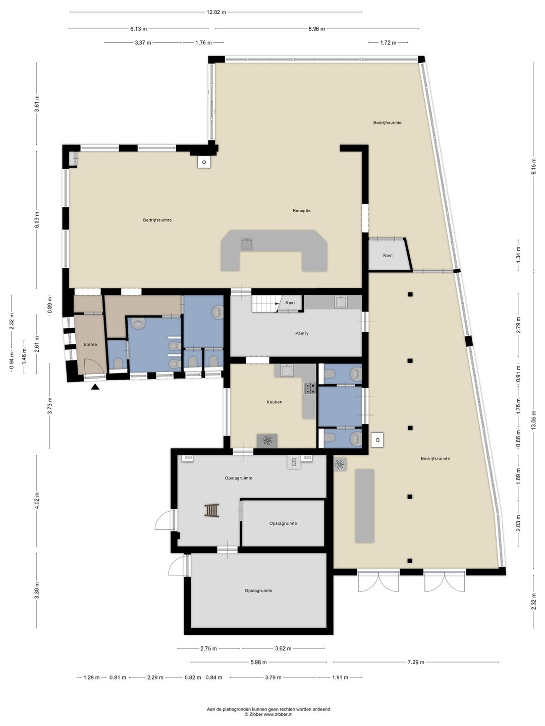 Café-restaurant: bar, zitgedeelte, keuken en opslag;