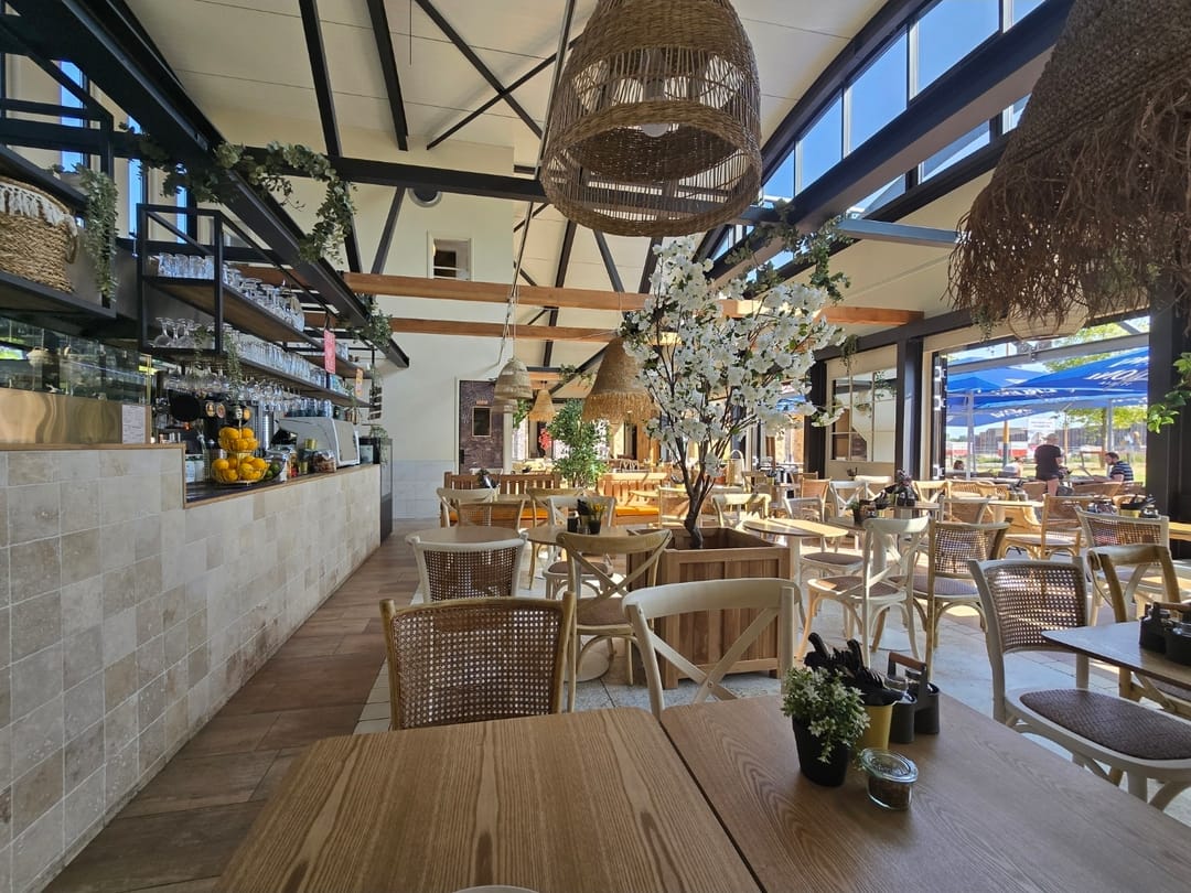Via het sfeervolle terras bereik je de entree, hier kom je direct de zaak binnen met links en rechts diverse zitplaatsen en een bar met daarachter de open keuken en een opslagruimte. De ruime toiletgroep bevindt rechts achterin de zaak. Er is een opslagruimte, personneelsruimte op de eerste verdieping aanwezig.
