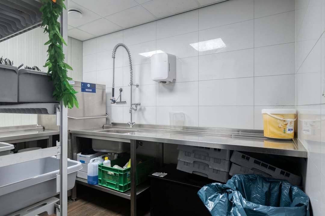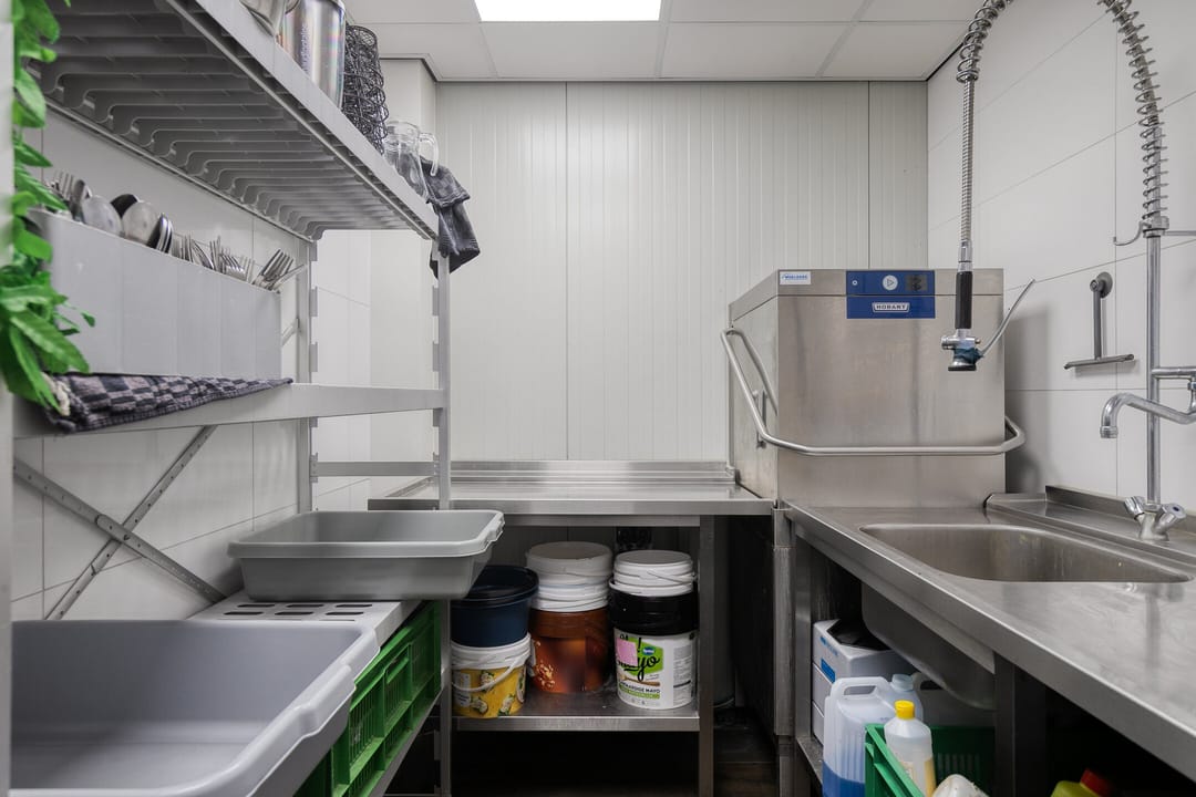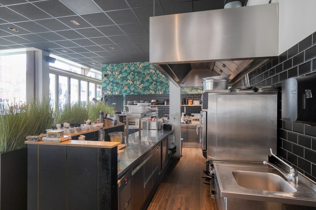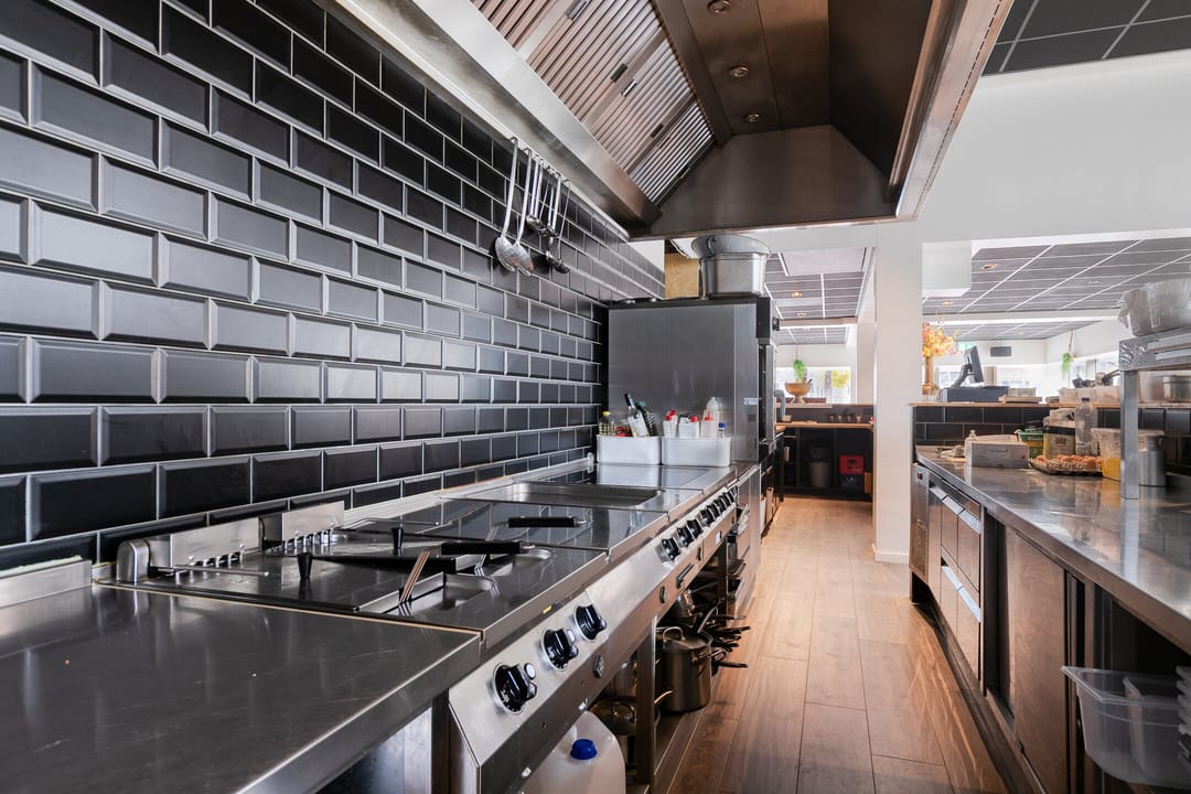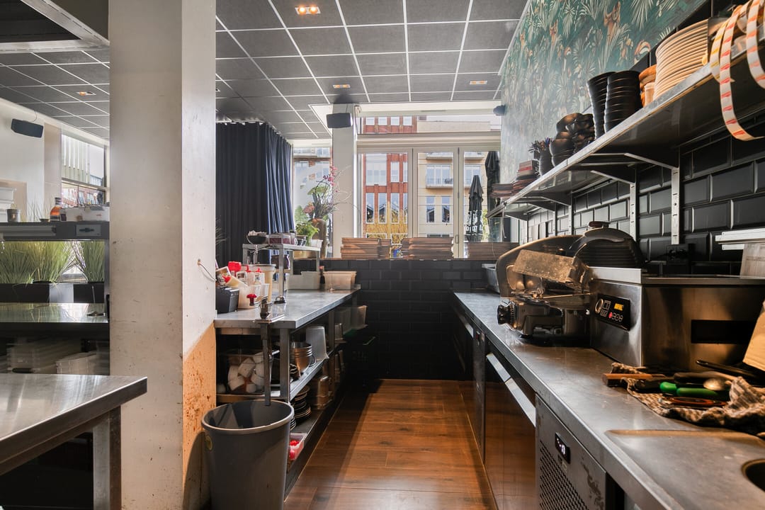 - Keuken aan de achterzijde, direct verbonden met het restaurant