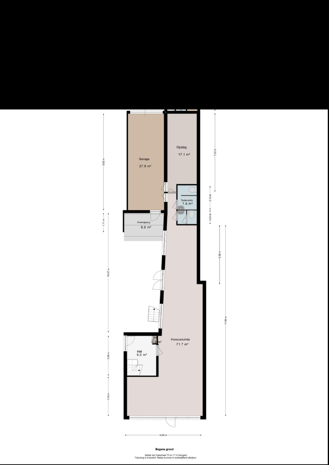 De totale ruimte van de horeca ruimte is ca. 96 m², onderverdeeld als volgt:
