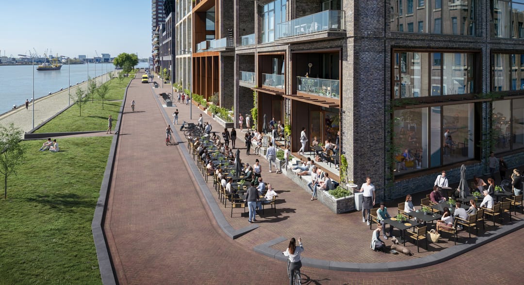 Nieuw: 63m2 Terras aan de Maas + 219m2 Casco Horecaruimte ideaal voor Grand Café, Brasserie, Bistro, Wijnbar of Luxe Restaurant. 65.000 euro per jaar ex btw.