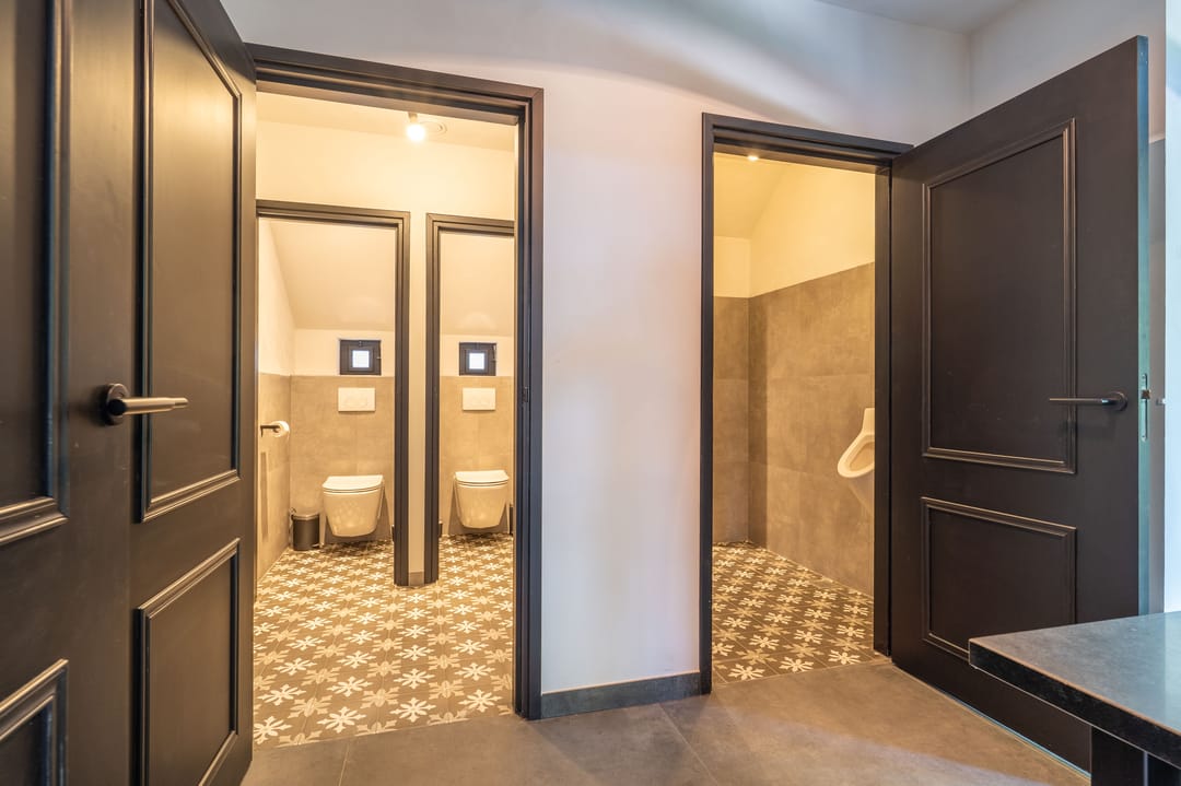 Naast het hoofdgebouw bevindt zich een zelfstandige dienstwoning, compleet met woonkamer, keuken, slaapkamer en badkamer – ideaal voor beheer, personeel of gasten.