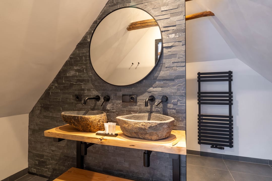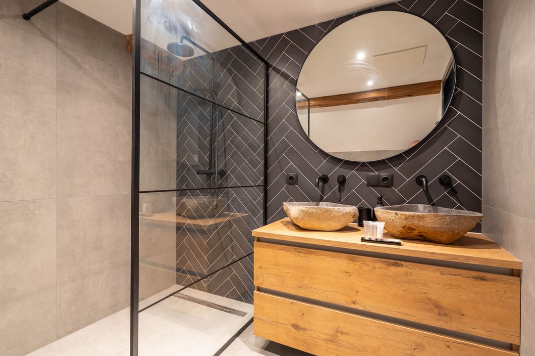 Rondom het pand bevinden zich twee zonnige terrassen (80 m² op het westen en 40 m² op het noordwesten) – ideaal voor gasten of privégebruik.