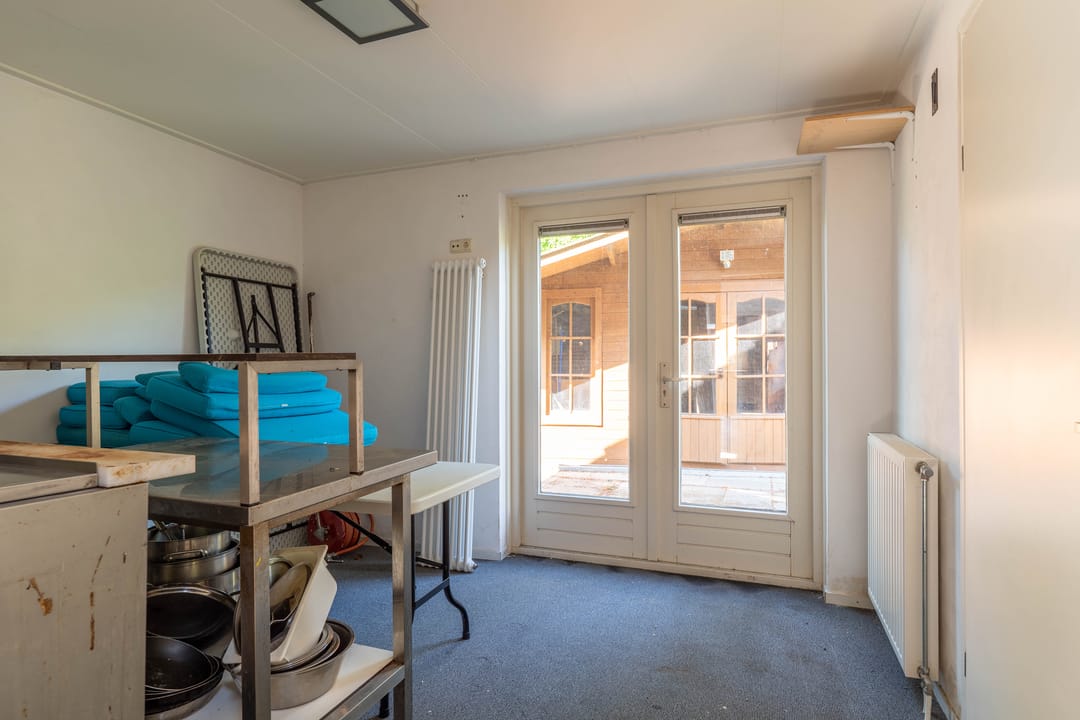 * Professionele keuken met o.a. inloopkoelcel, vriescel, steamer, 8-pits gaskookstel, afwaskeuken en spoelruimte.