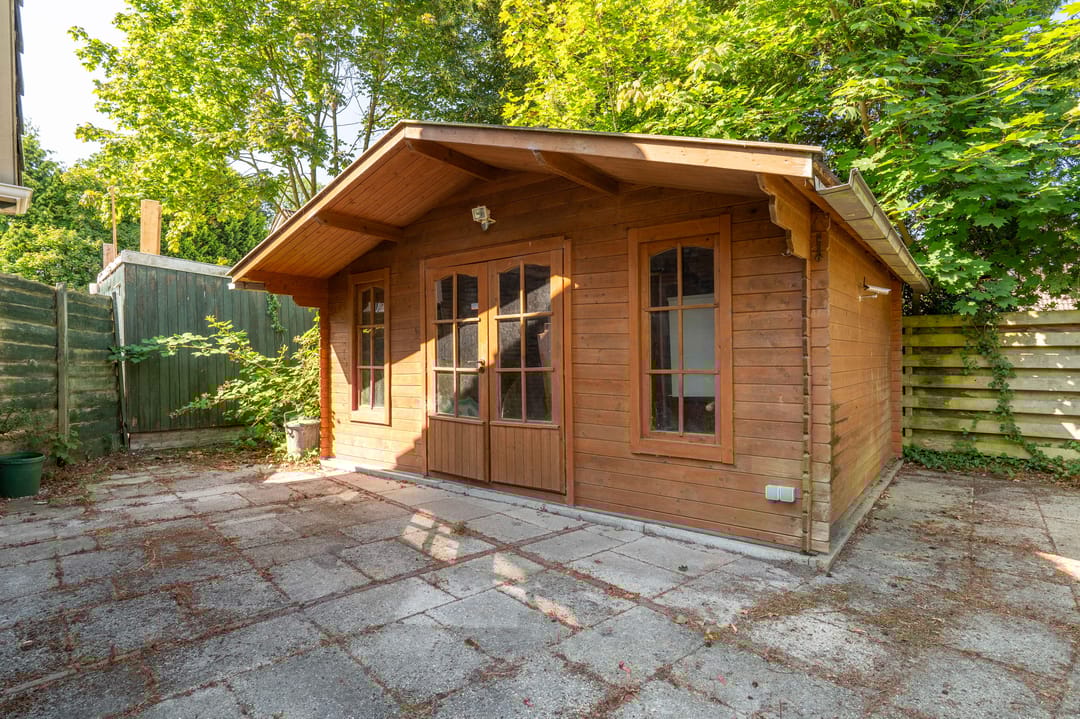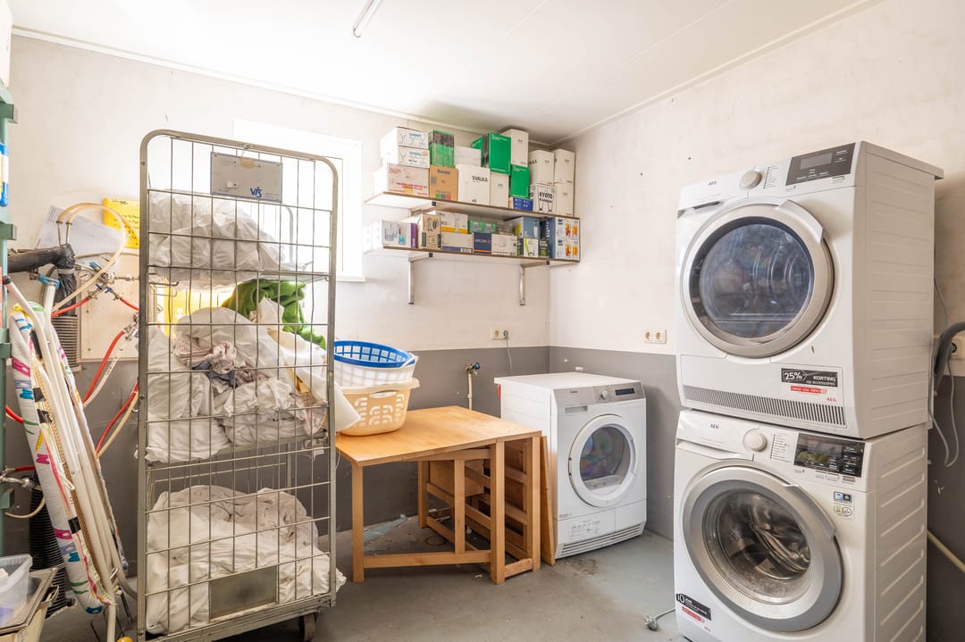 * Aangebouwde opslagruimte met personeelstoilet en twee zolderbergingen