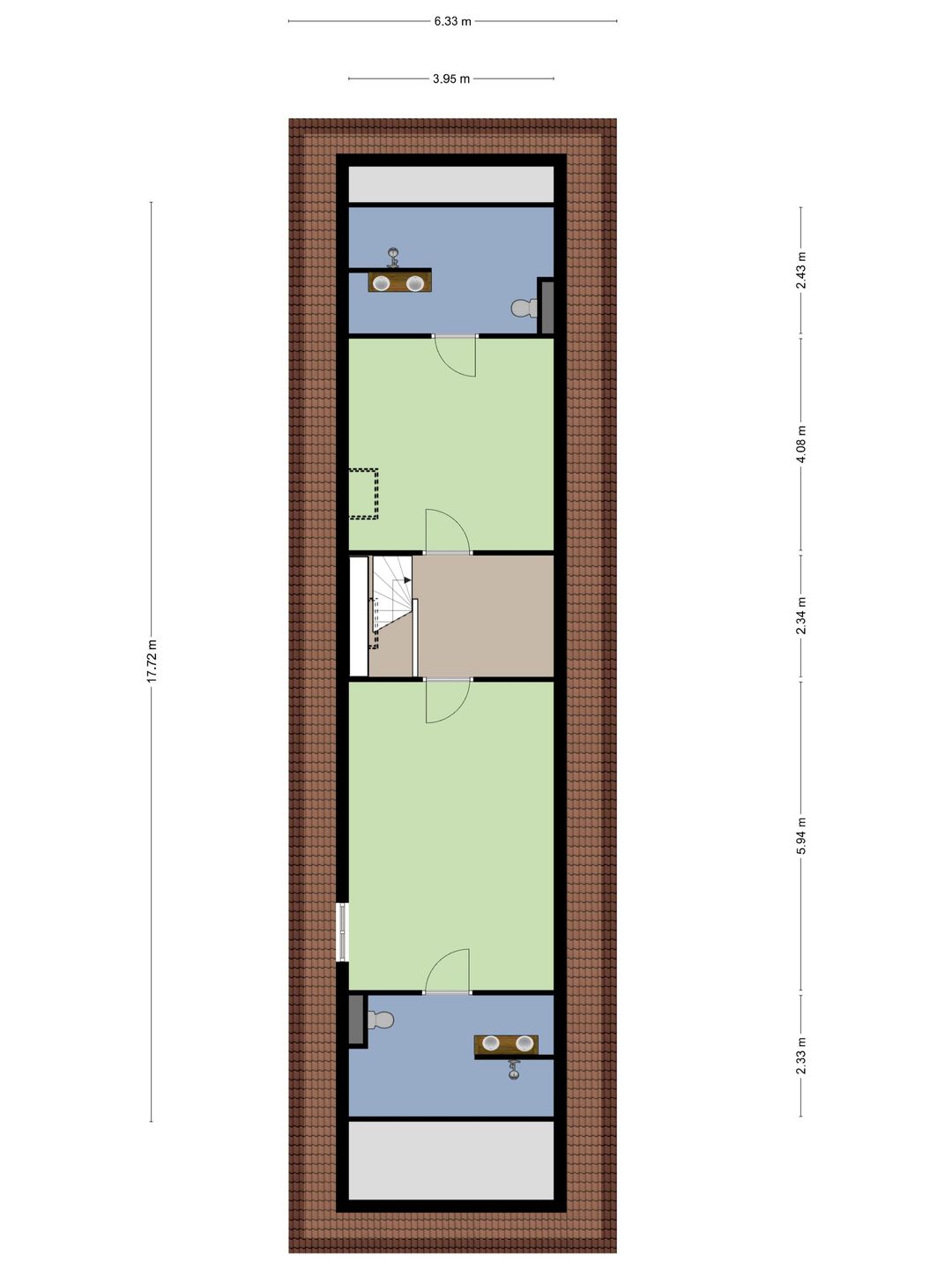 * Overloop met 2 ruime kamers, beide met eigen sanitaire voorzieningen