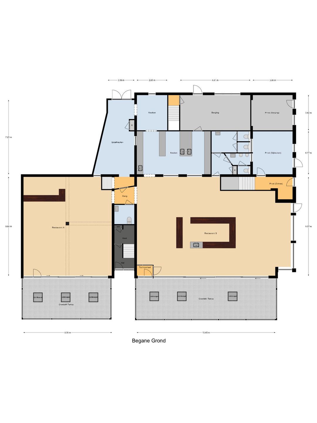 Het restaurant heeft een totale oppervlakte van circa 490 m² waarvan circa 330 m² op de begane grond. Daarnaast zijn twee serres aanwezig met een totale oppervlakte van circa 87 m² en een ruim zomerterras van circa 91 m². Meer informatie vindt u in onze brochure (zie hierboven 'Bekijk de brochure van dit object' of 'Download brochure').