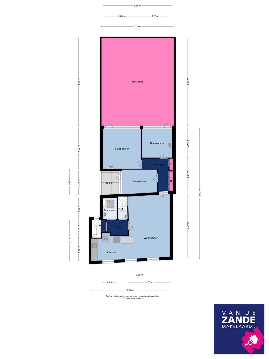 en het dakterras. Via de trap bij de overloop is de zolder bereikbaar.