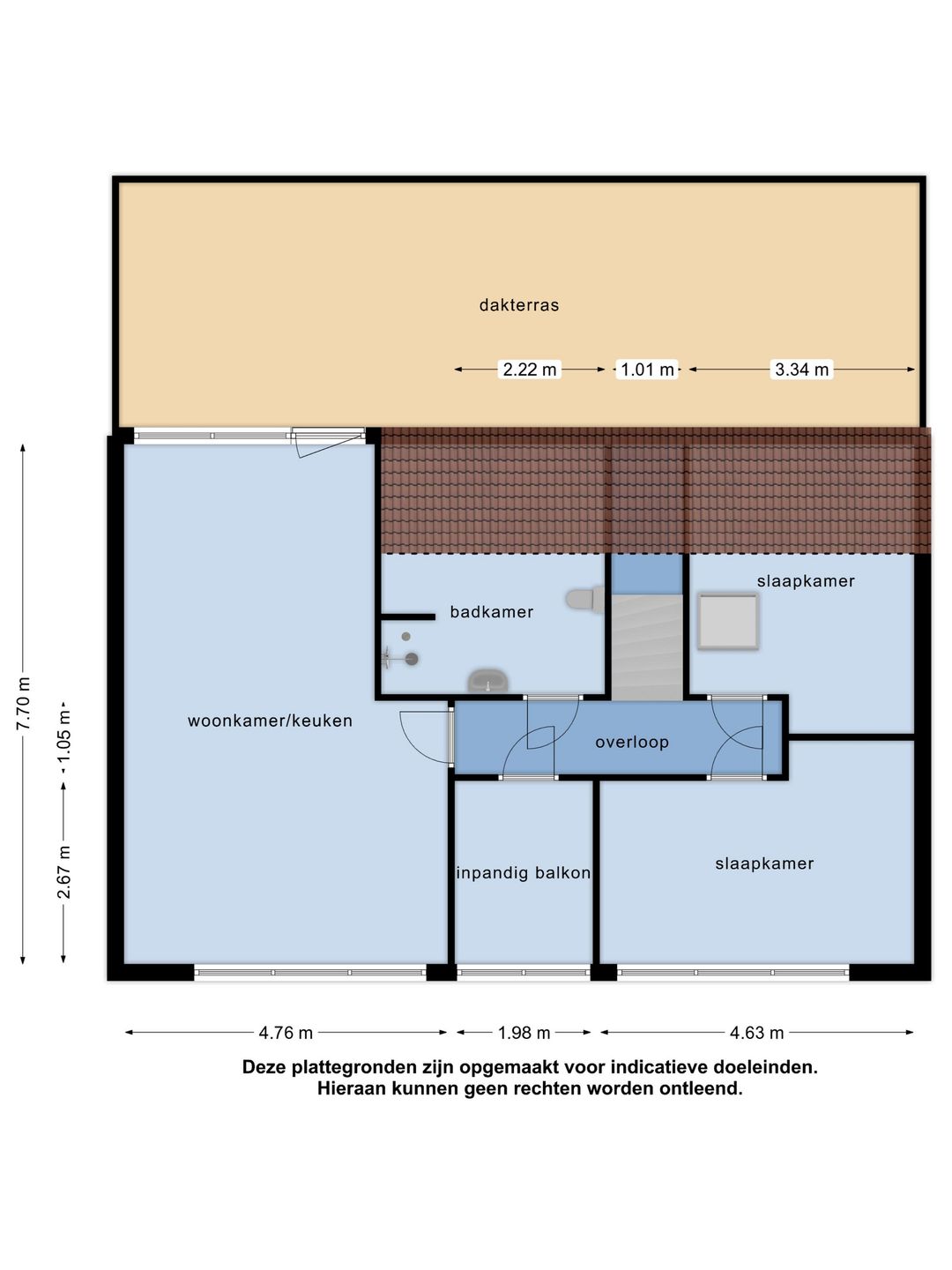 • Dakterras achterzijde : ca. 43 m2
