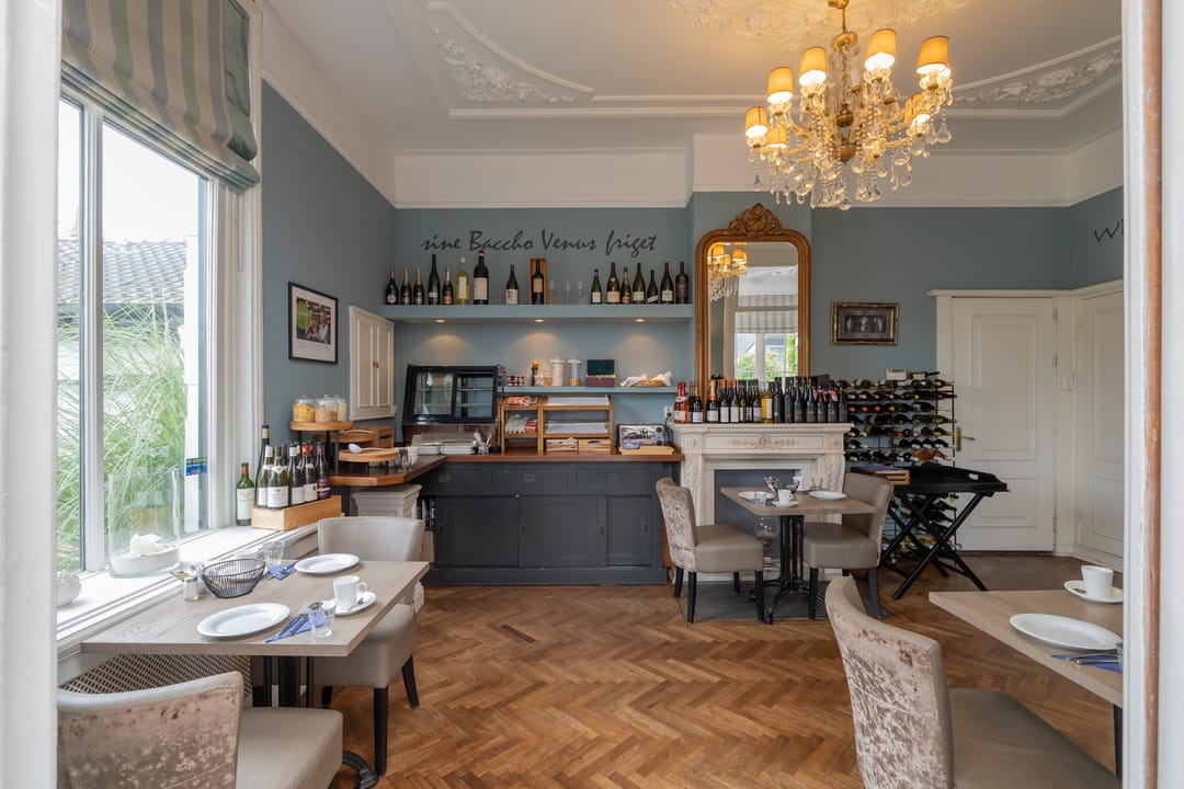 Op de begane grond van de villa bevinden zich de keuken, de toiletten, het restaurant, en de sfeervolle bar met aansluitend de ontbijtruimte. Er zijn diverse opslagruimten, waaronder een ruime kelder. Aan de achterzijde beschikt het restaurant nog over een knus achterterras.
