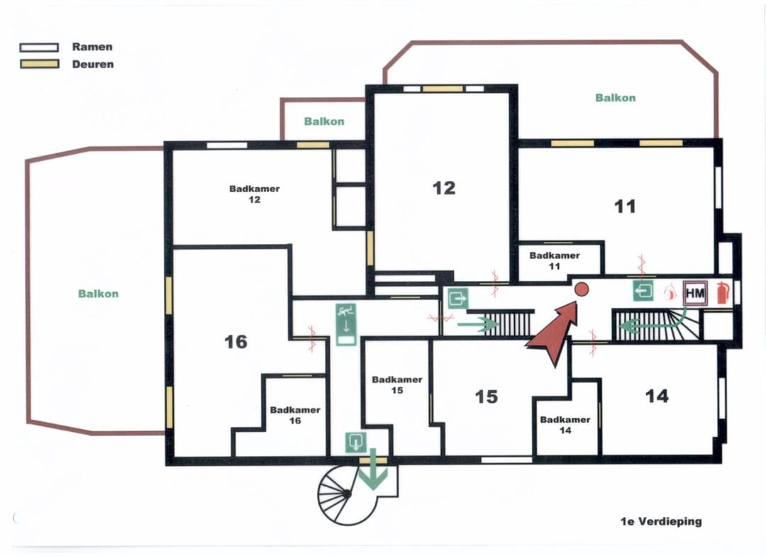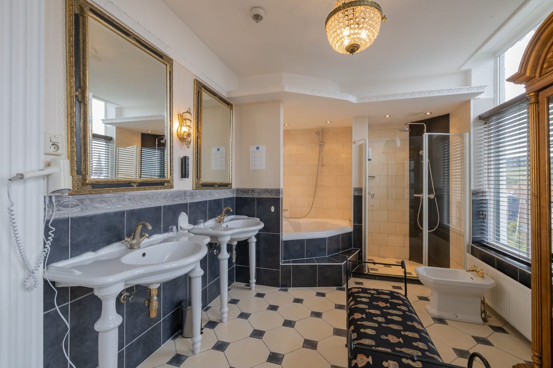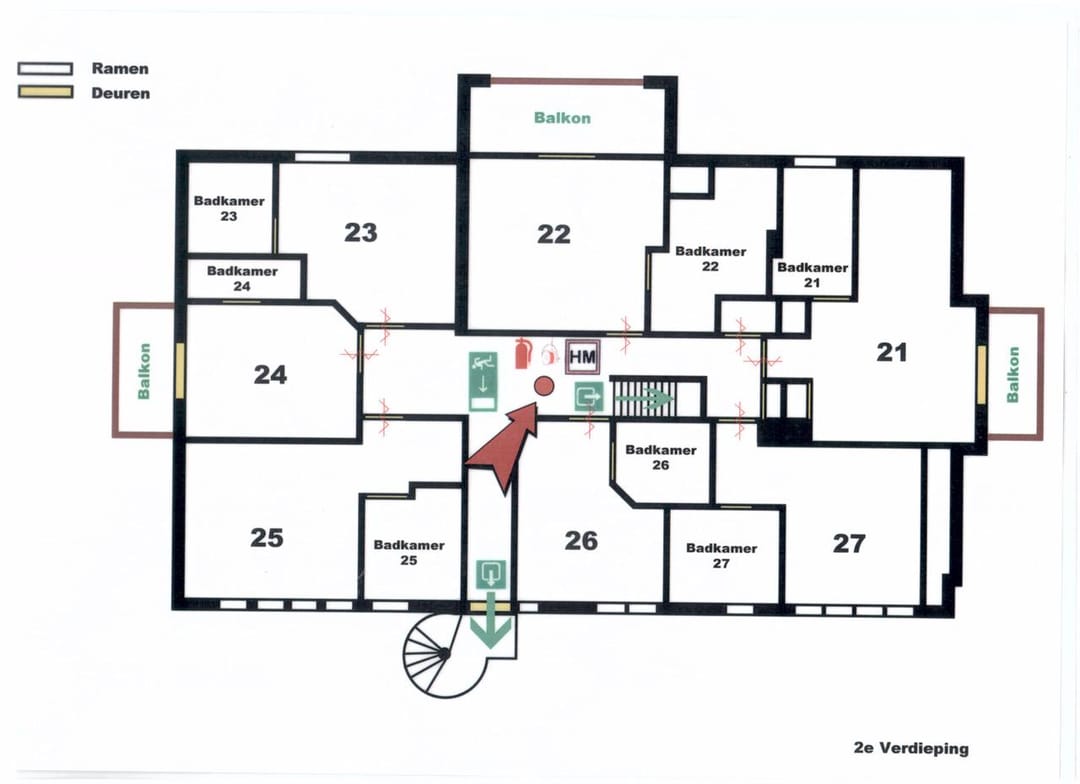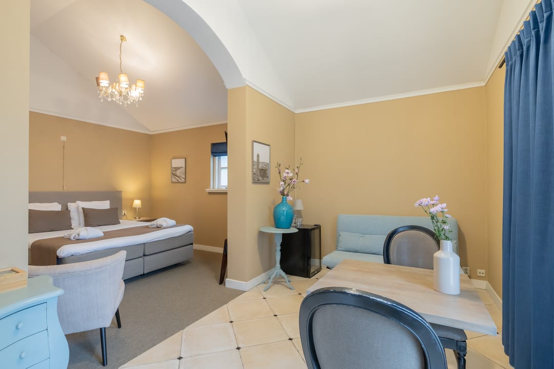 Op de eerste etage bevinden zich vijf hotelkamers en op de tweede etage zeven. Alle badkamers hebben een eigen badkamer en toilet. Een aantal van de kamers beschikt over een uniek balkon. De dertiende hotelkamer is gesitueerd in een apart gelegen tuinhuisje op de begane grond.