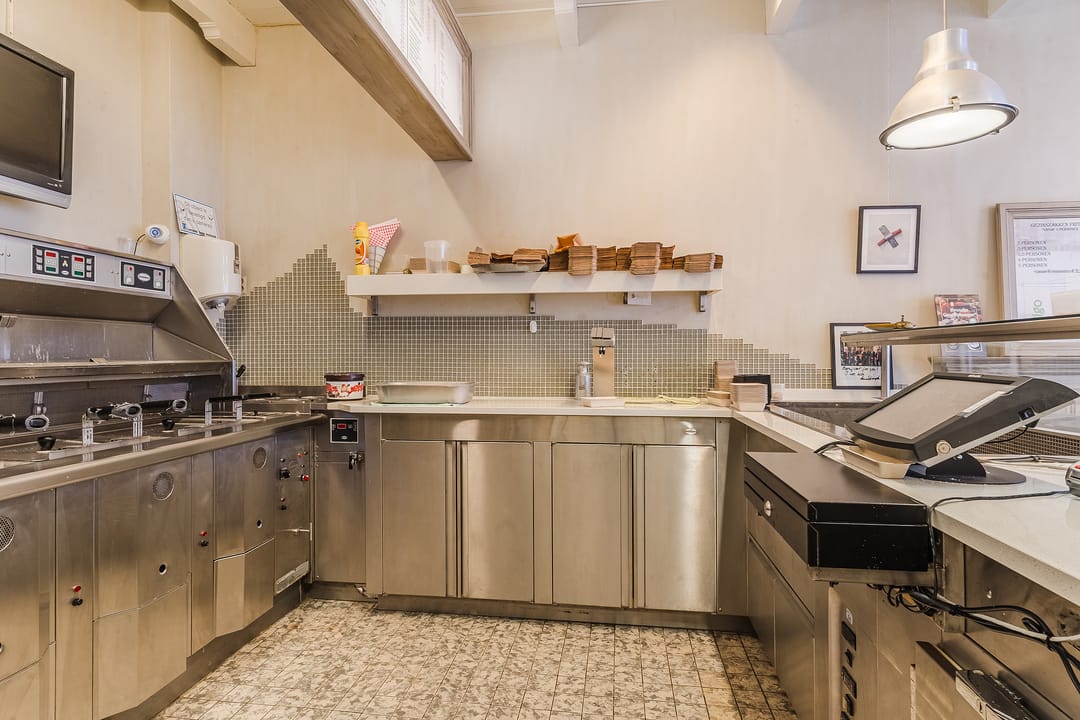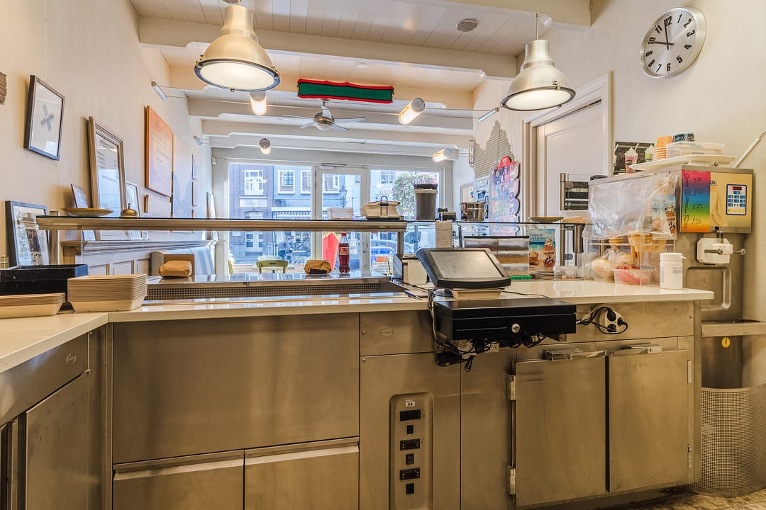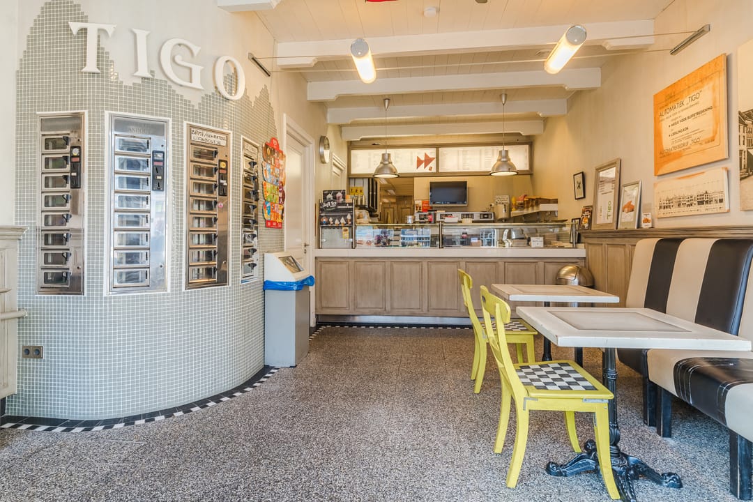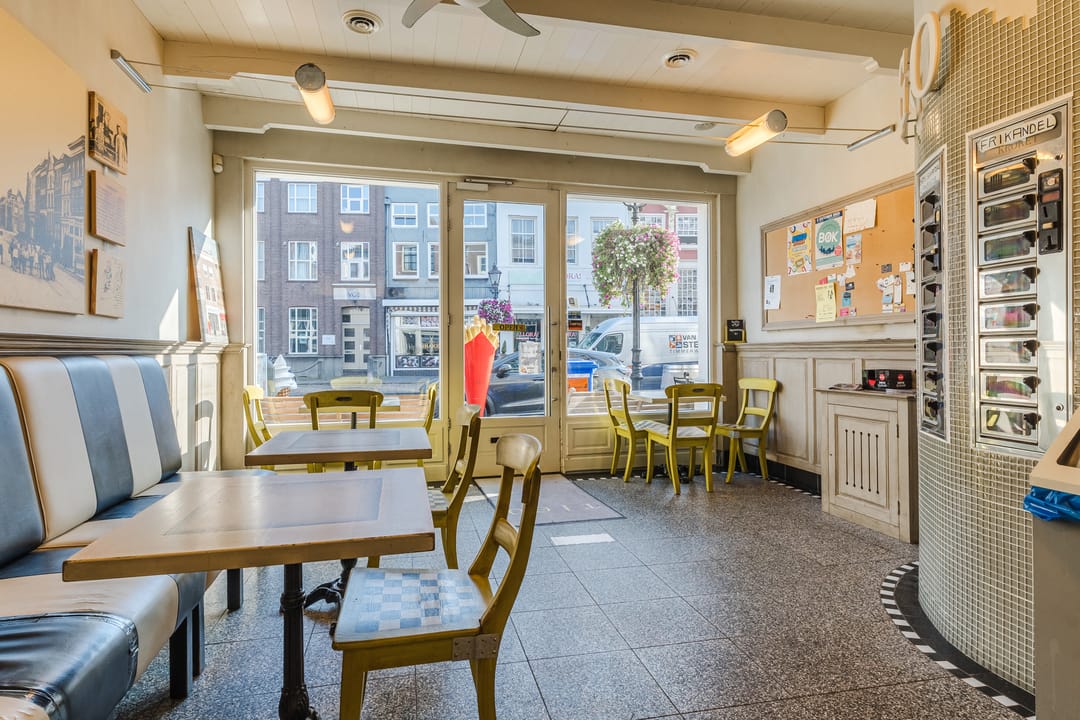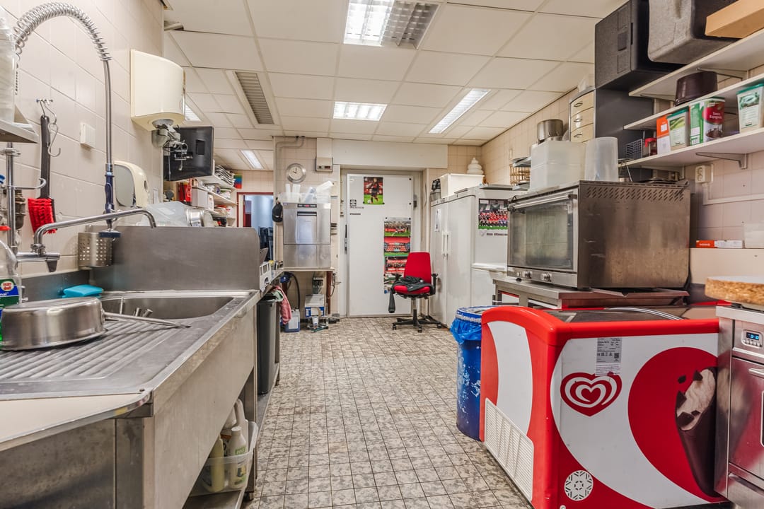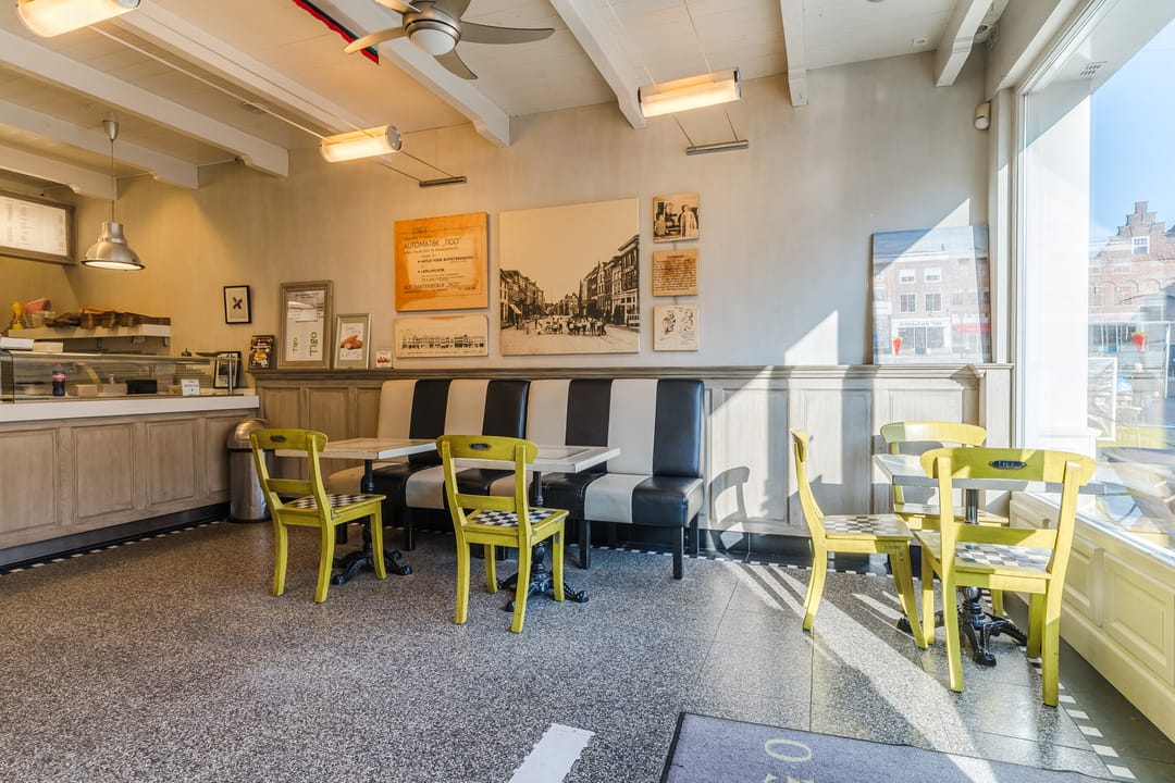 Binnen is er ruimte voor circa 10 zitplaatsen en buiten een gezellig terras met circa 12 zitplaatsen. Achter de verkoopruimte bevindt zich de keuken, opslagruimte en personeelstoilet. De keuken beschikt over gasfornuis, spoeltafel, diverse vrieskasten en koelcel. Tevens is er een kleine binnenplaats aanwezig.