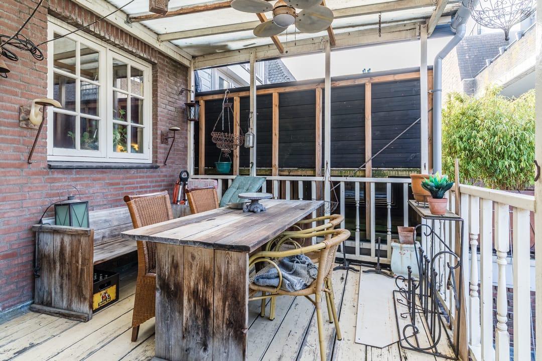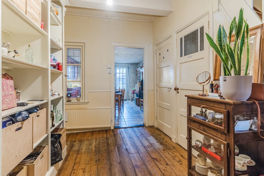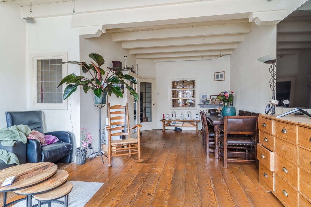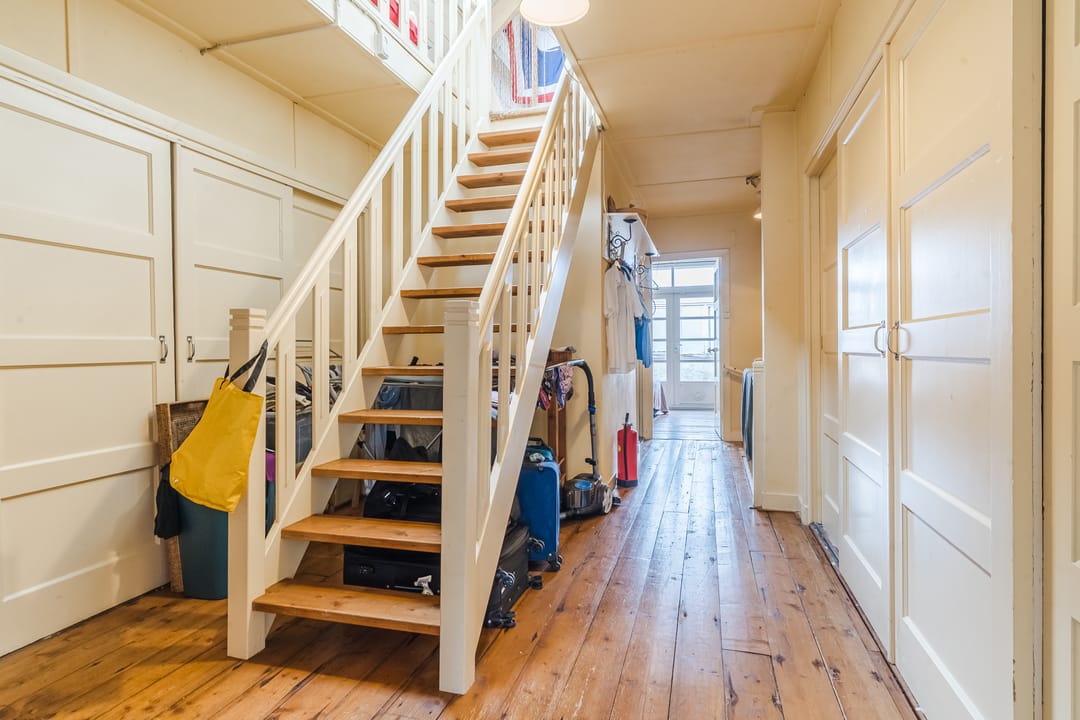 De bovenwoning is royaal en licht en biedt veel leefruimte. De bovenwoning strekt zich uit over drie verdiepingen en is bereikbaar via een interne opgang. Op de eerste verdieping bevindt zich een ruime hal met toilet, een lichte woonkamer, een praktische keuken en een dakterras. De tweede verdieping biedt drie comfortabele slaapkamers, een badkamer en een tweede dakterras. De derde verdieping bestaat uit een ruime zolder, die extra mogelijkheden biedt voor opslag of een extra werk-/slaapruimte.