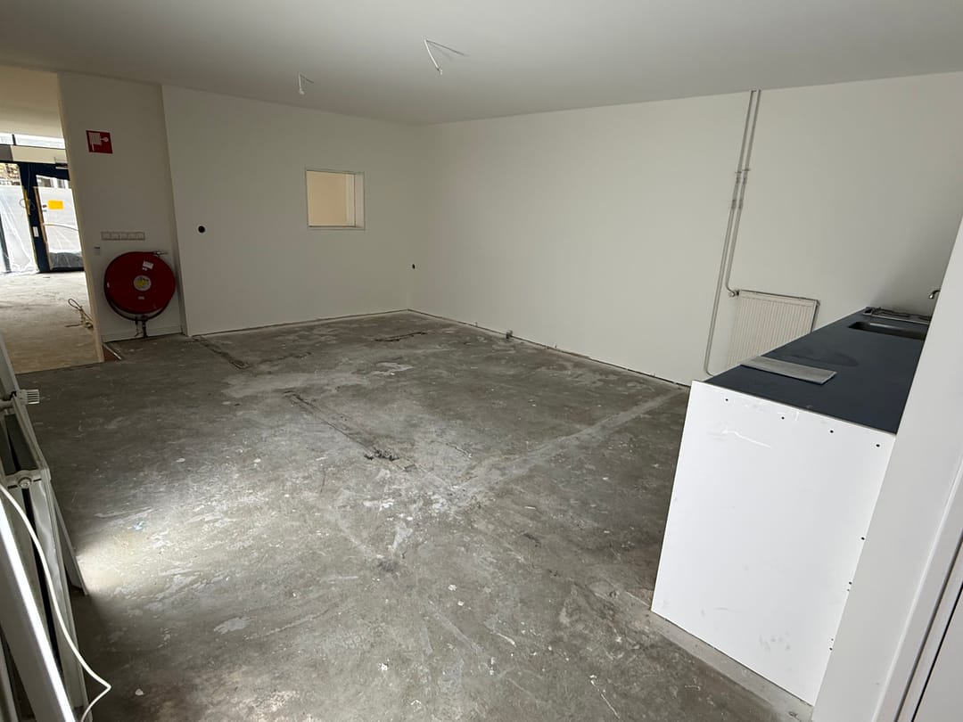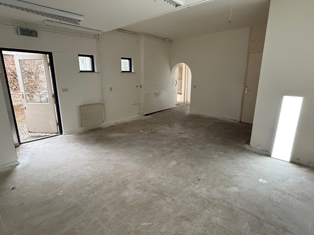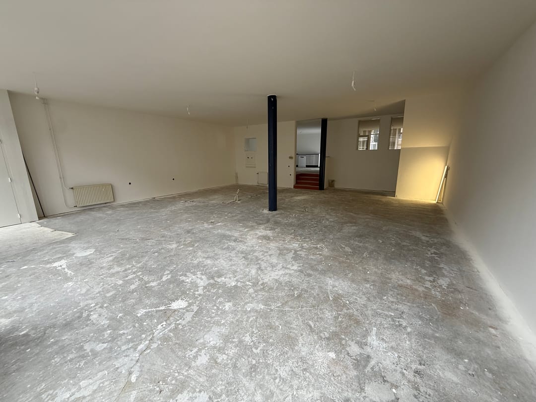 De huidige indeling is dan dus ook onderverdeeld in een winkelruimte met daarachter gelegen een 3 tal kamers en is de afgelopen maanden gestript en geheel opnieuw afgewerkt voor wat betreft wanden en plafonds welke voldoen aan de brandwerende en geluidsisolerende eisen.