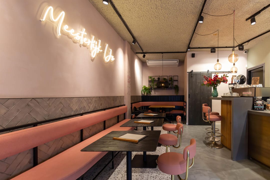 De verkoopruimte is ca. 60 m² en is sfeervol ingericht met diverse zitmogelijkheden, waaronder twee hoge houten tafels met vintage krukken, een lange bank met stalen onderstel, mooie tafels met vintage krukjes en een cosy corner met bank en stoelen. Alle meubels zijn vervaardigd uit hoog-waardige materialen, wat bijdraagt aan een stijlvolle en duurzame uitstraling en plaatst biedt aan circa 23 gasten.