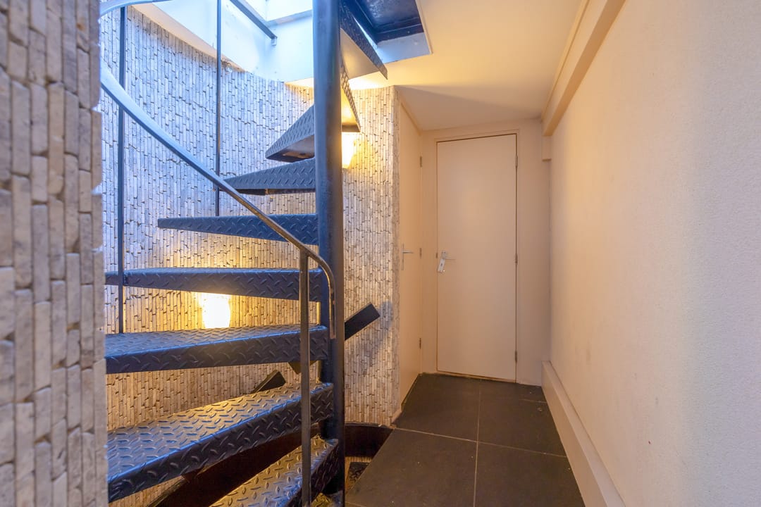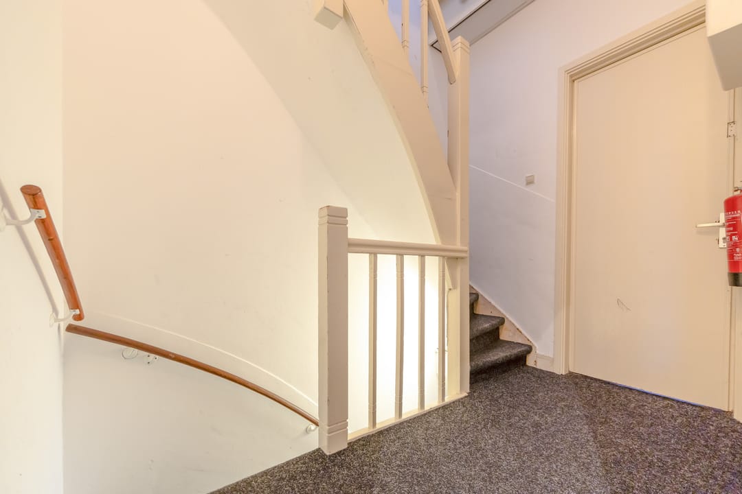 VIA DE ANDERE DEUR in de tochthal, komt u middels de trap op de 1e verdieping overloop met deuren naar slaapkamer 2 en de rest van appartement 26 A.